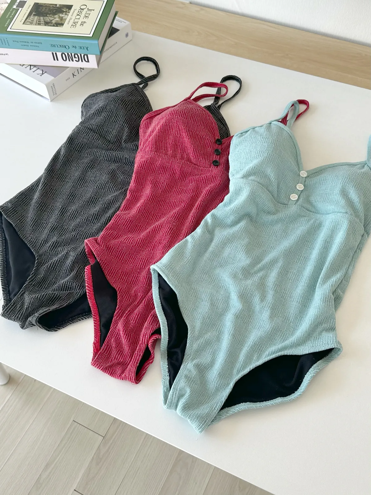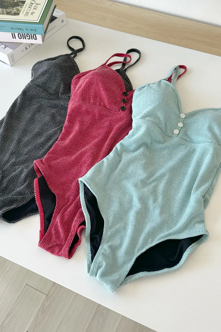 材質:聚酯+ 縲縈+ 棉+ 彈性纖維Lavida Girls 齊聚一堂🥰這款泳衣淡雅帶點復古感,適合不敢露肚子的美眉穿!三個顏色都超美😍釦子點綴設計讓整件看起來不單調!可下水的針織料子,既溫柔又甜美的一件泳裝~ 黑>>紅>>藍