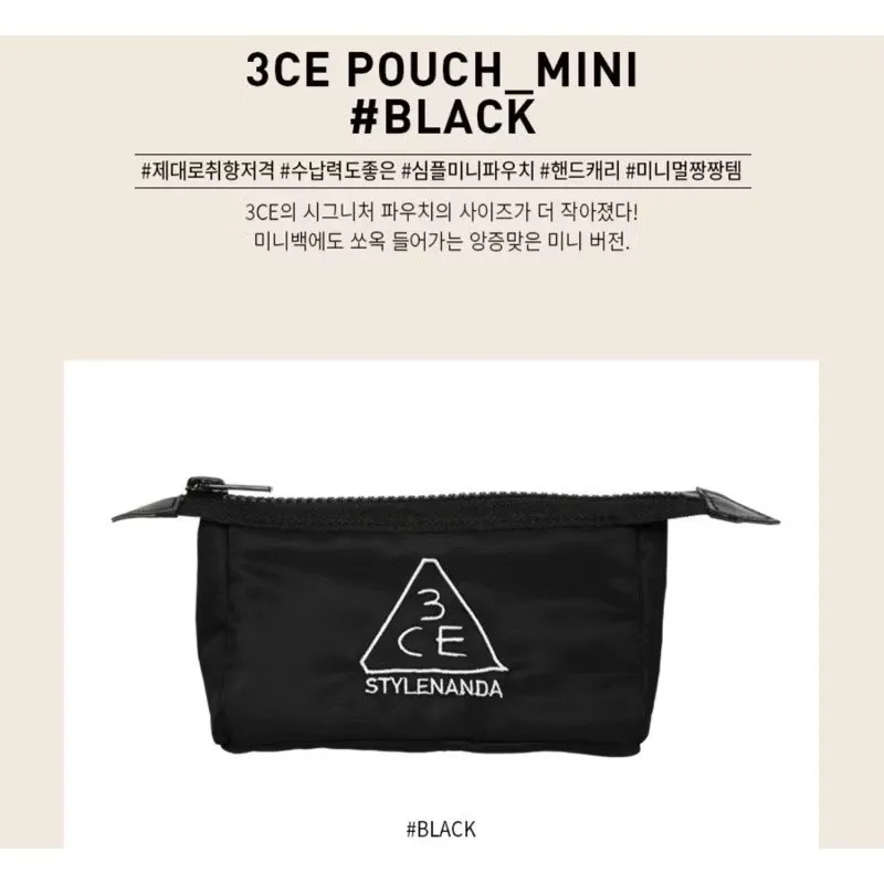 3CE_002可愛3CE三角化妝包迷你款(原NZ181) 粉 黑 原價$380 特價$230以下顏色,黑色 以下顏色,粉色 均為韓國實體店面和官方網站採買之正品 商品無現貨,皆為預購 需要等待韓國供貨時間 詳細到貨日期無法精準預估 若有急用無法等待,請評估後再下單小提醒非瑕疵商品不因個人觀感或與想像不同退換貨因布料彈性及測量不同,誤差值1-5公分內正常韓國代購屬客製化服務,故不適用7日鑑賞期