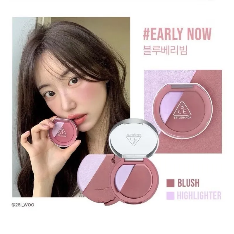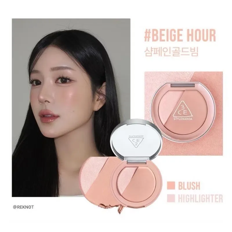 腮紅+高光二合一 蹺蹺板雙拼設計 一盤速成妝