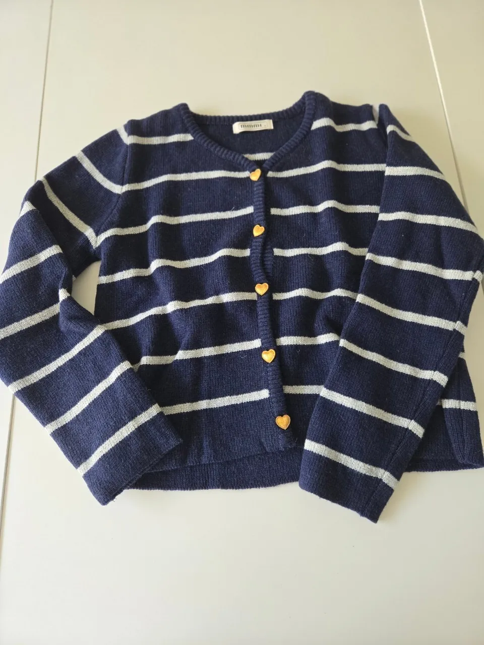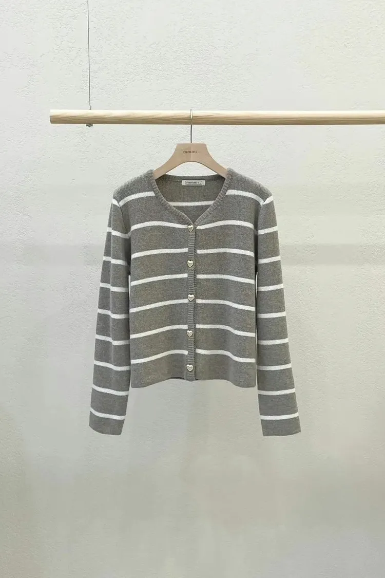 99AN1228細緻愛心美釦條紋針織上衣外套(mmmi)