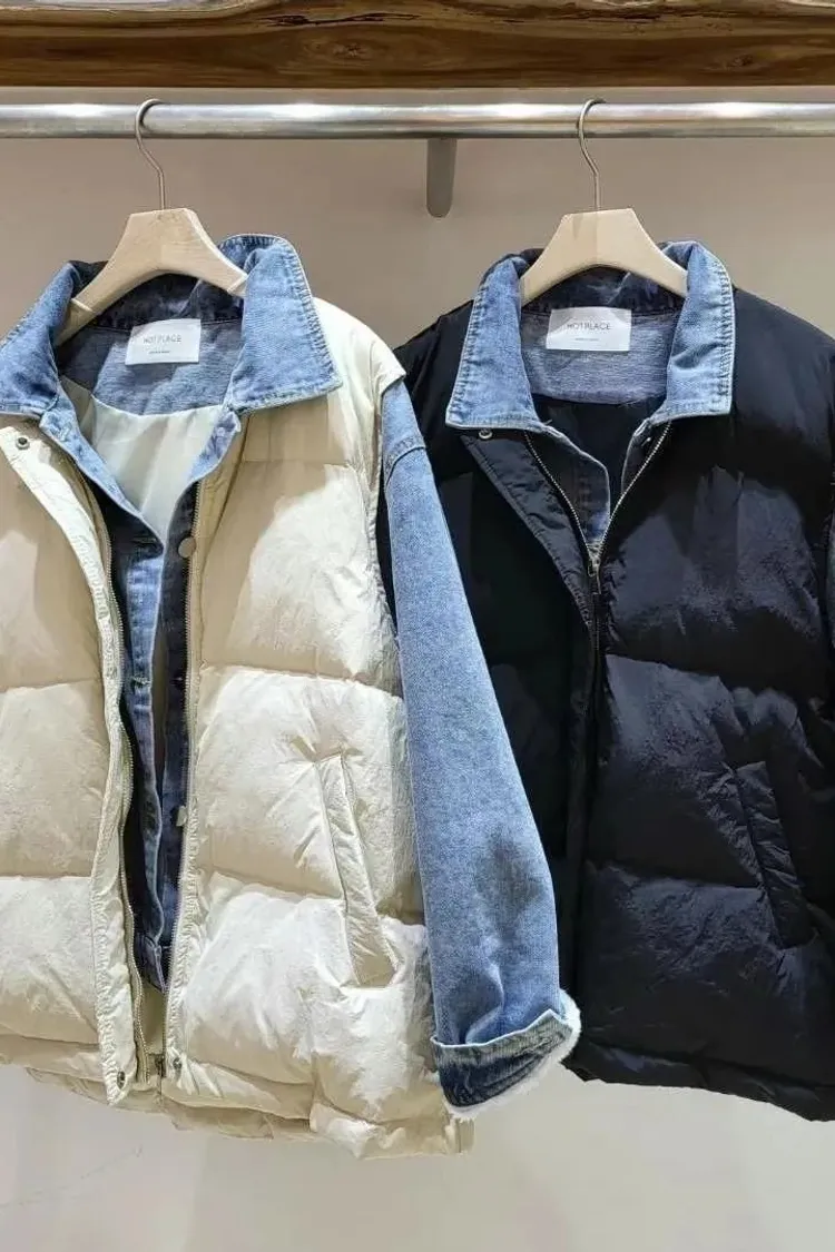 99AN1230輕盈層次假兩件背心牛仔外套(已斷貨)