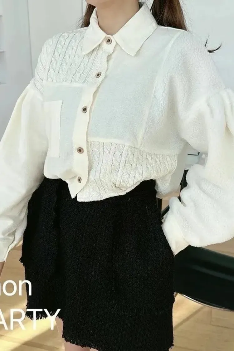 99AN1241拼接棉麻針織單口袋排釦上衣(echo party)