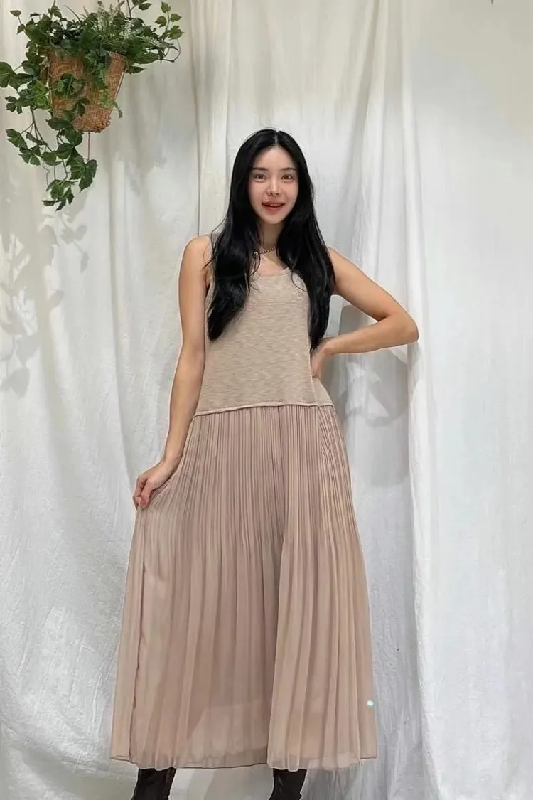 99AN967推薦款超舒適純色拼接背心洋裝