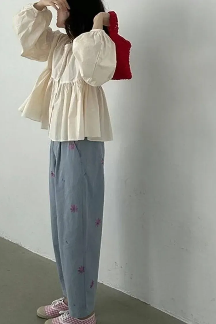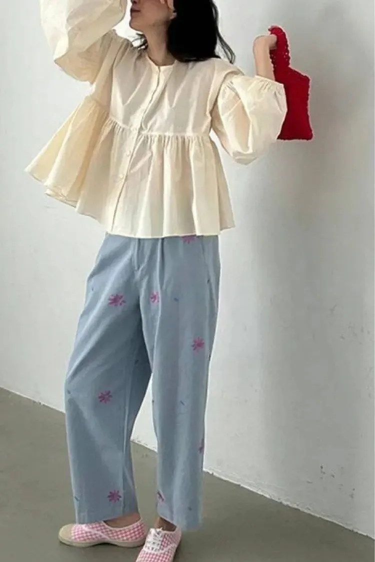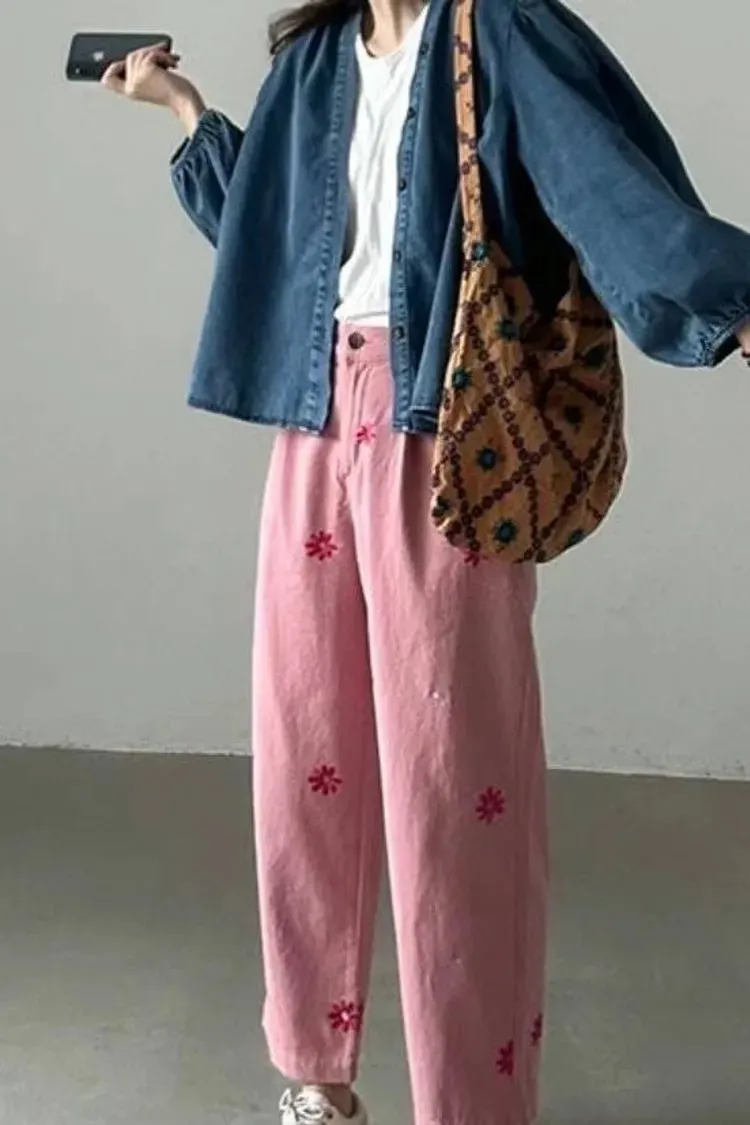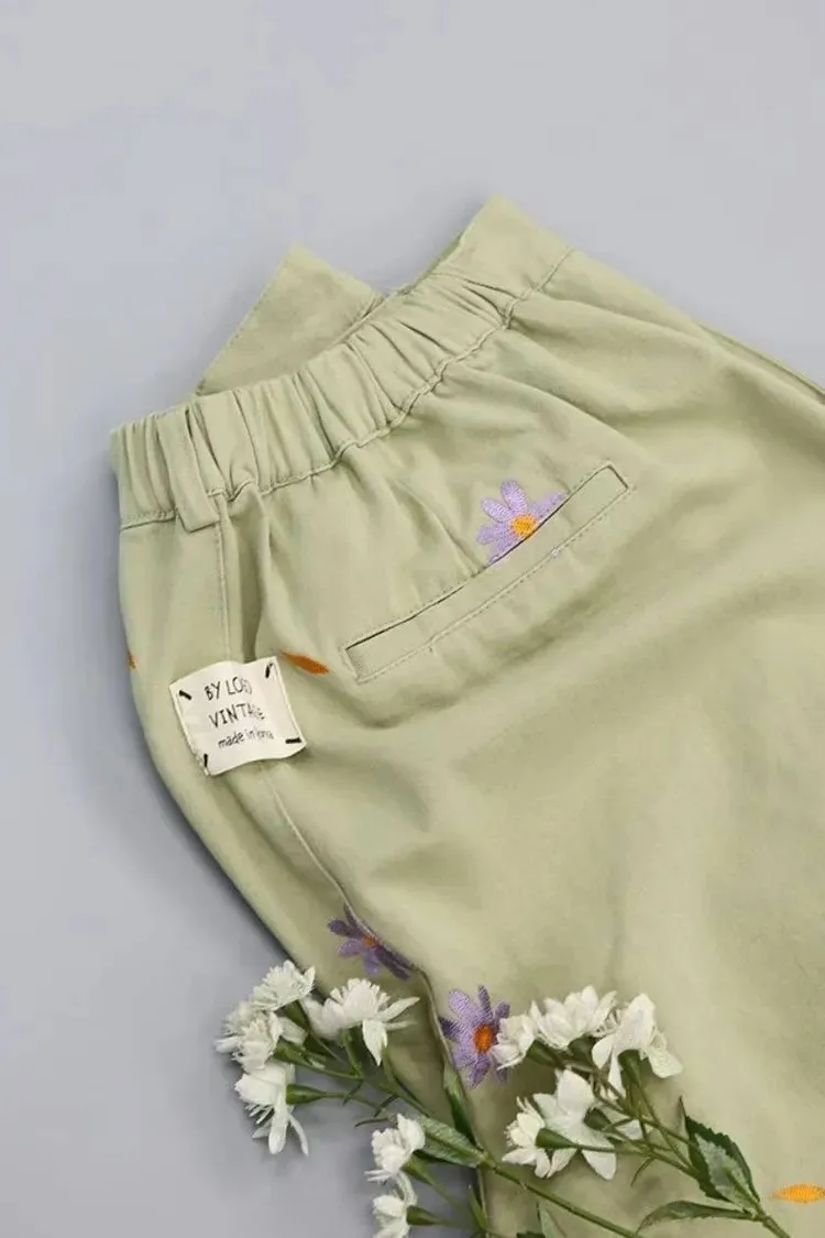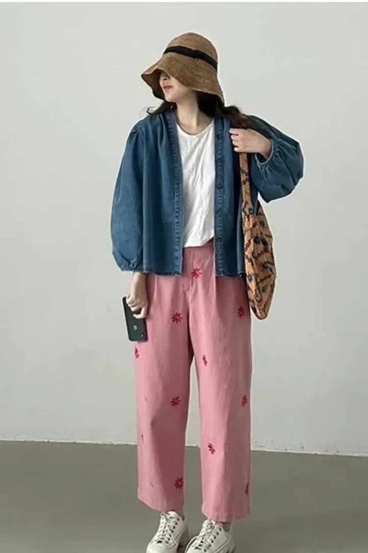 99CM1100薄款潮流小雛菊九分褲褲 藍 粉 綠 原價$1180 亂買$399
