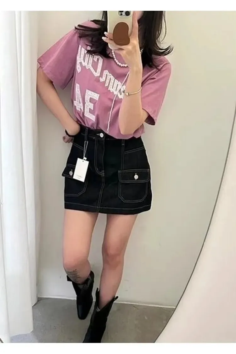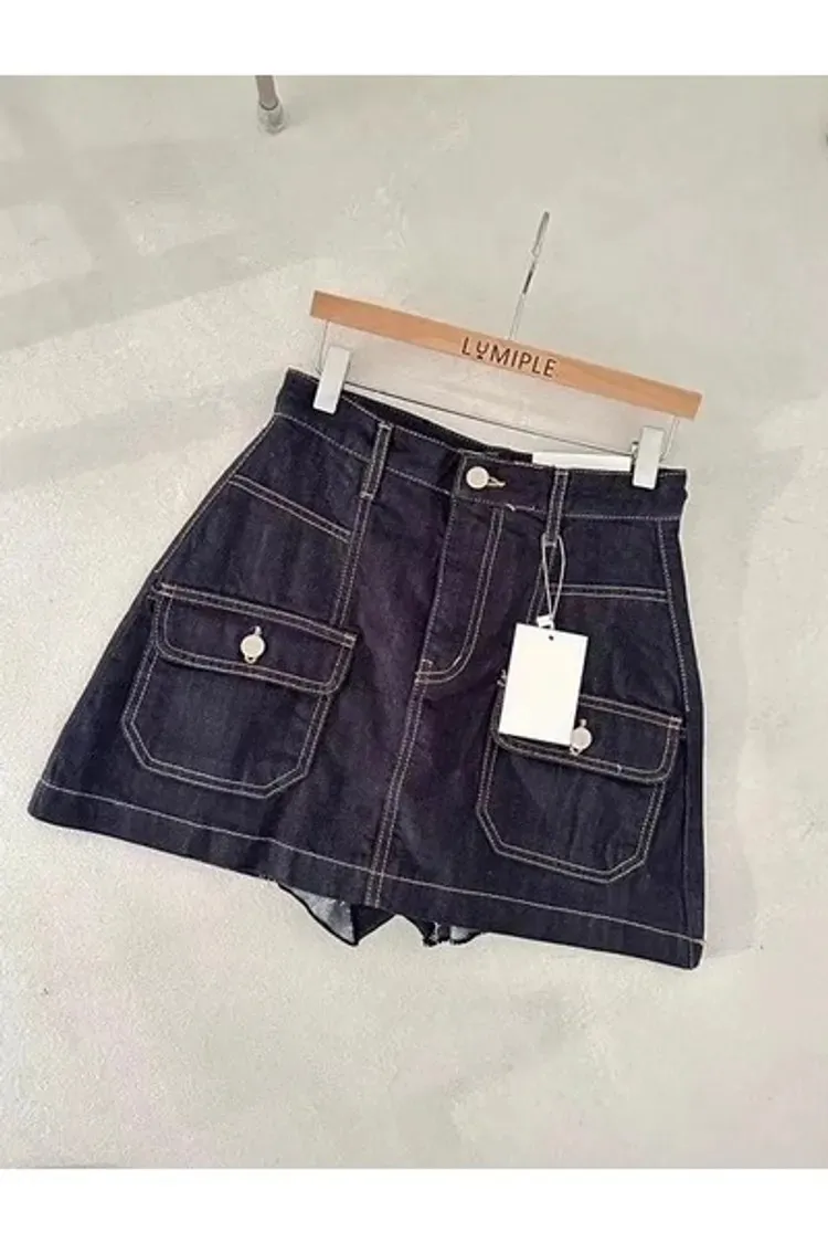 牛仔 質感跳色車線 雙口袋 IU演唱會同款 是褲裙唷