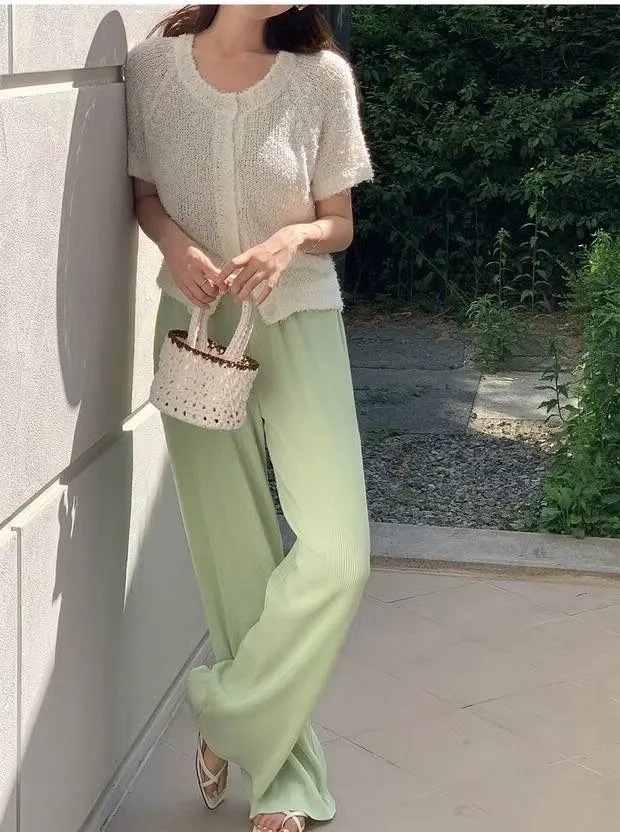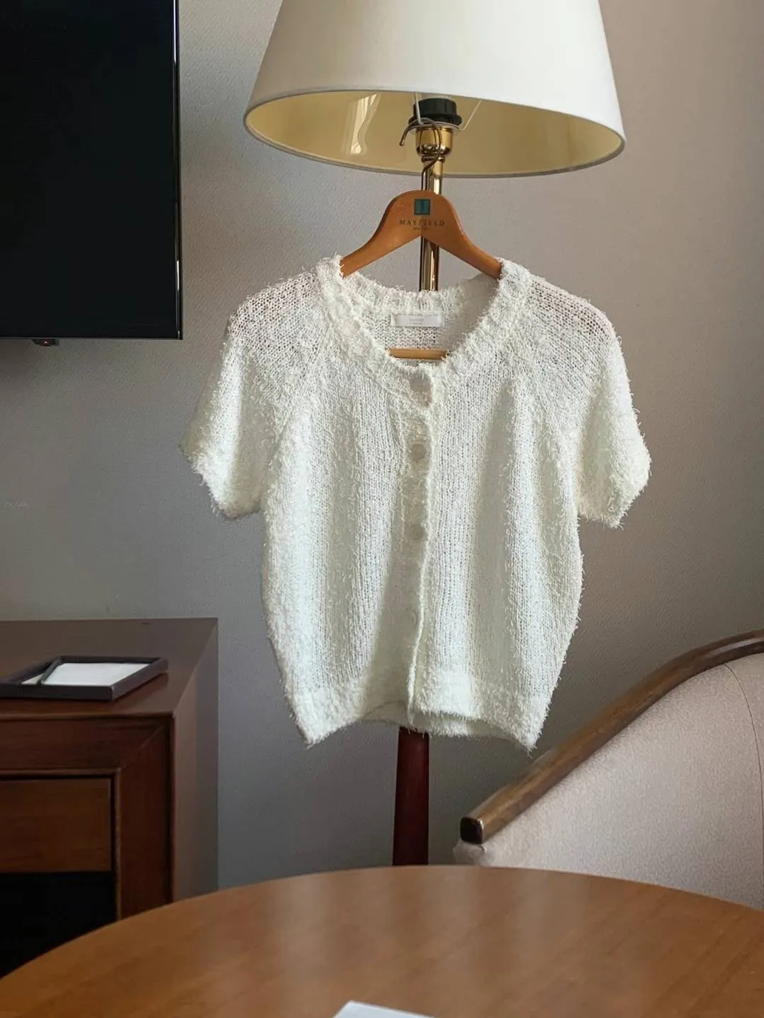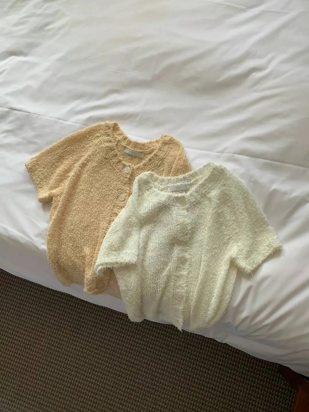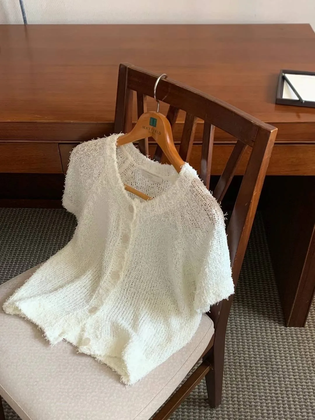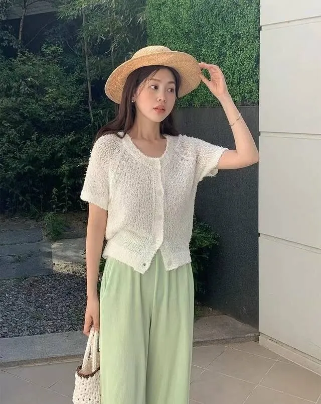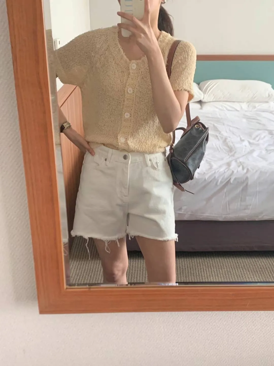 AA029特價質感排釦針織短袖上衣 白 黃 原價$880 特價$399