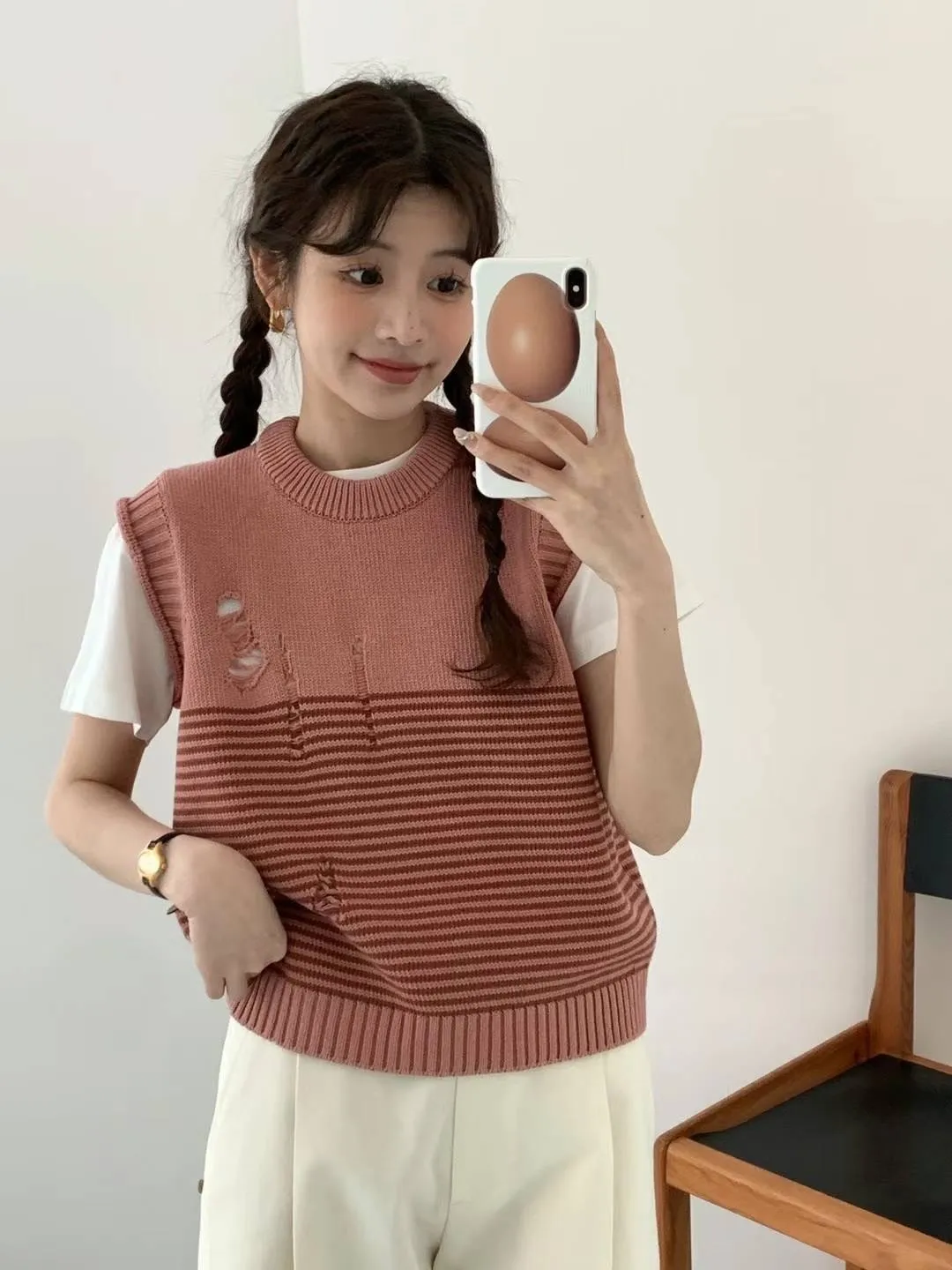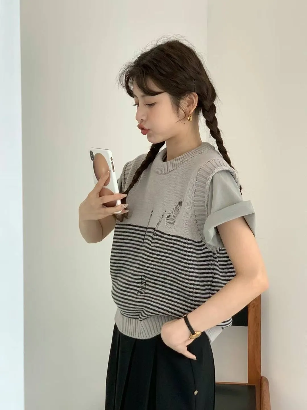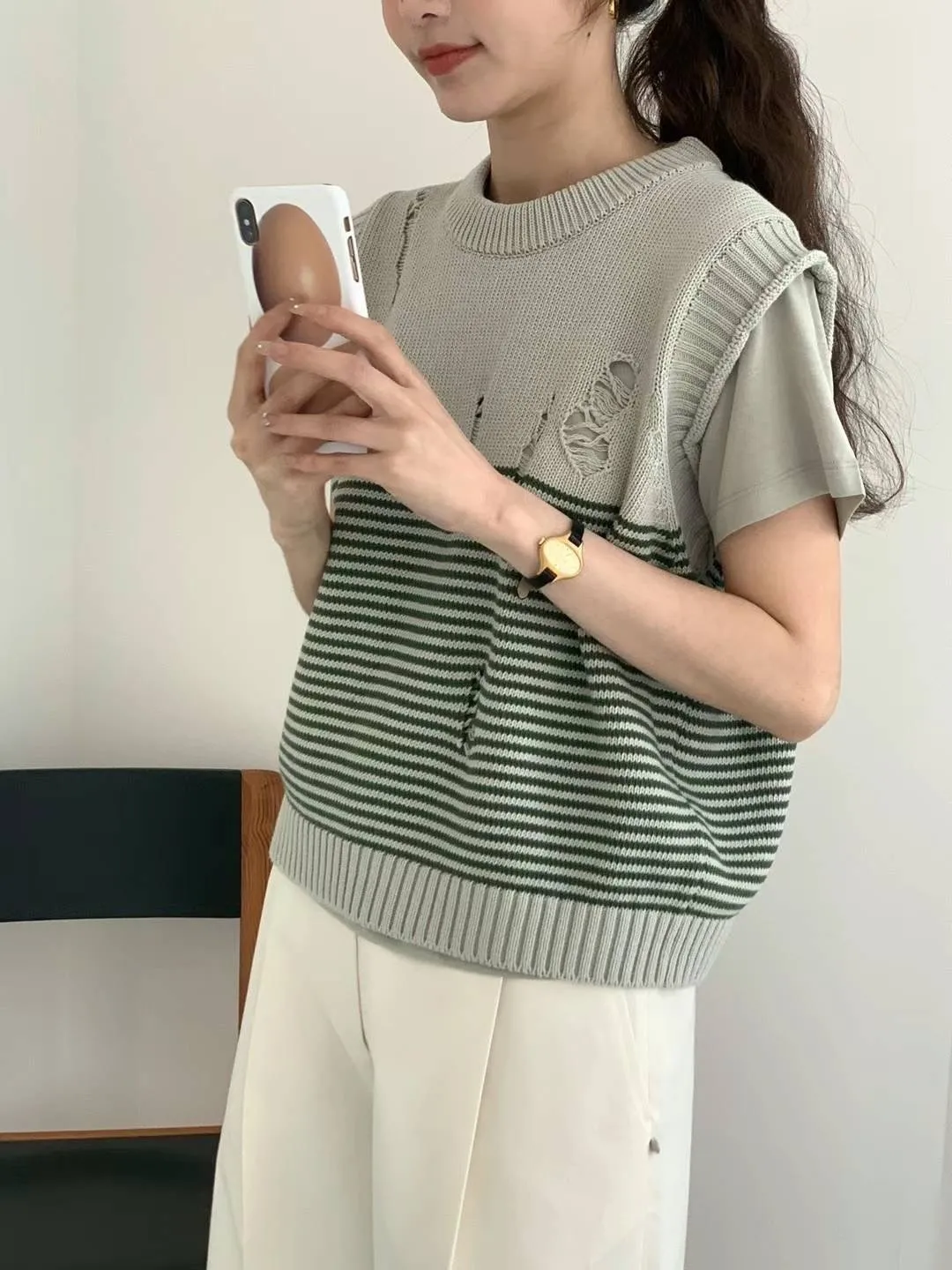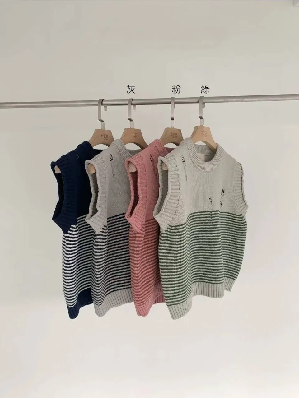 AA049特價潮流抓破條紋背心 灰 綠 粉 原價$1700 特價$750