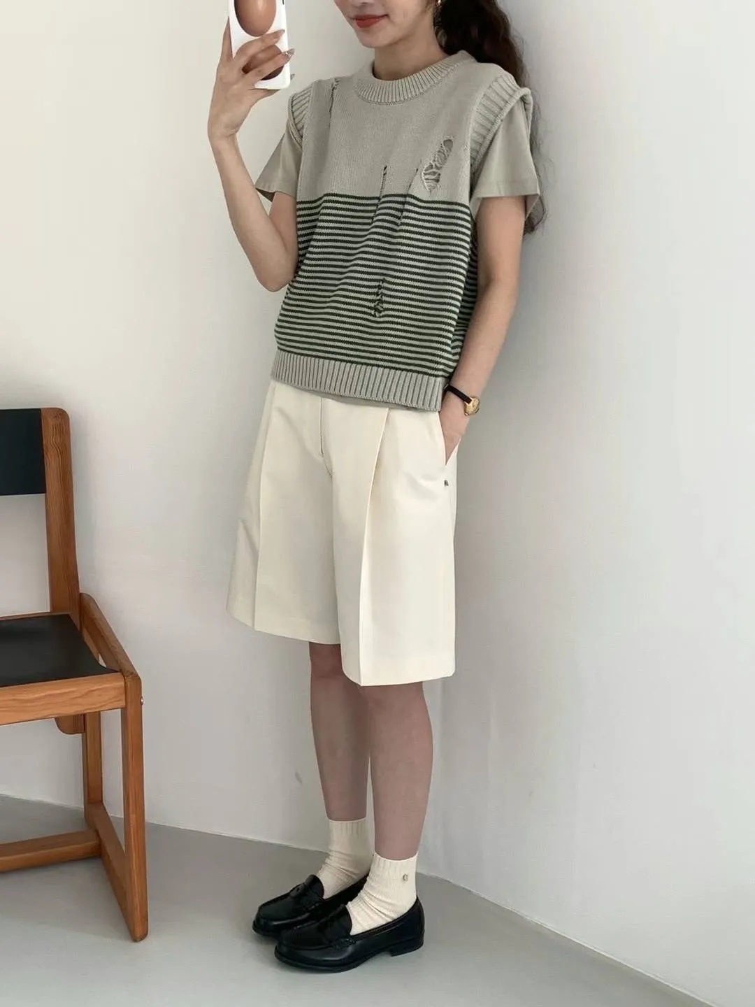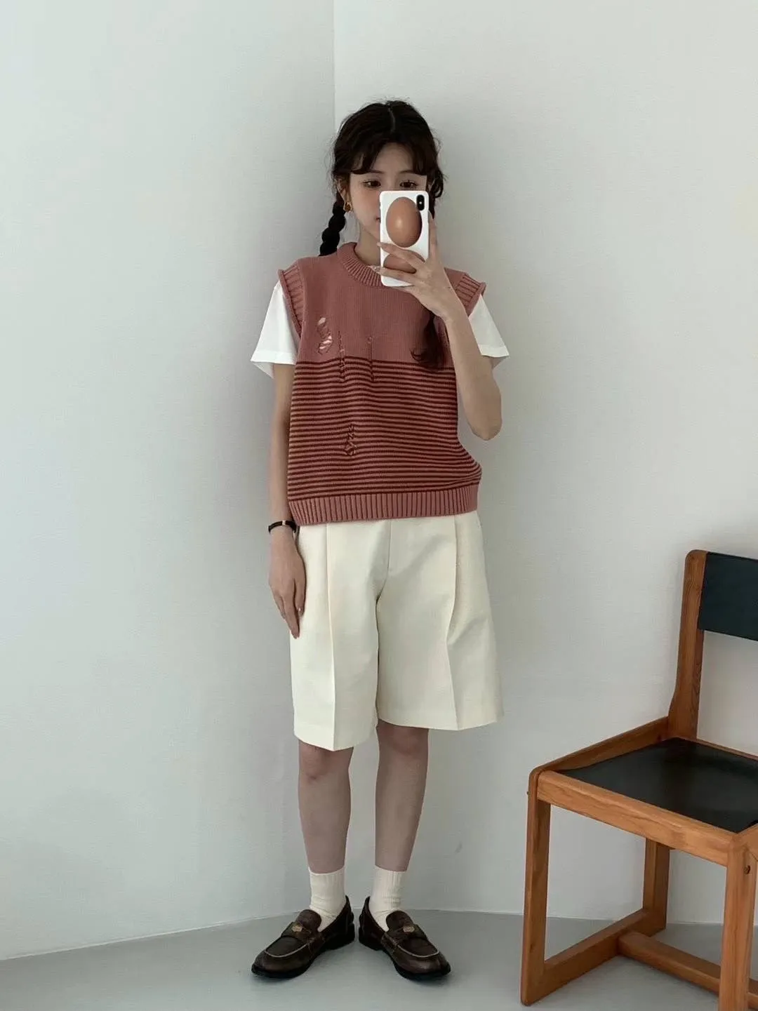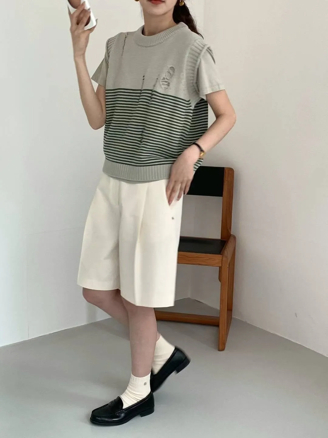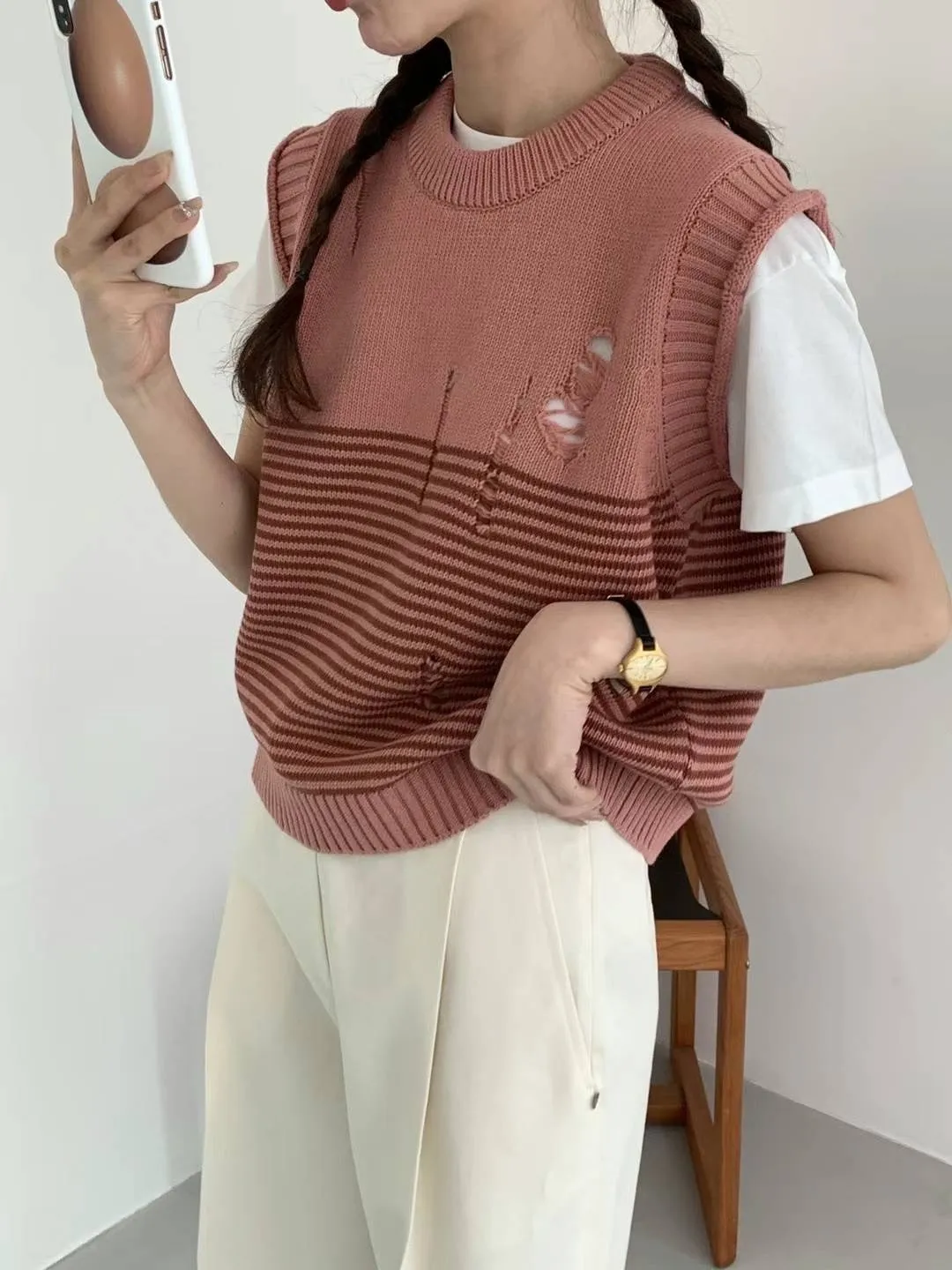 AA049特價潮流抓破條紋背心 灰 綠 粉 原價$1700 特價$750