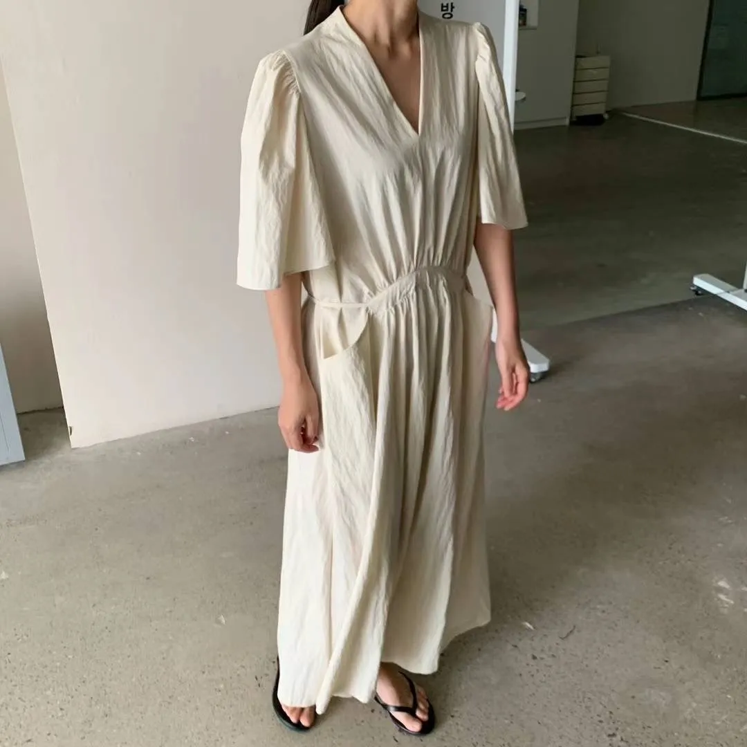 縲縈+尼龍 涼感 無內裡 有口袋 寬寬荷葉秀 腰綁繩