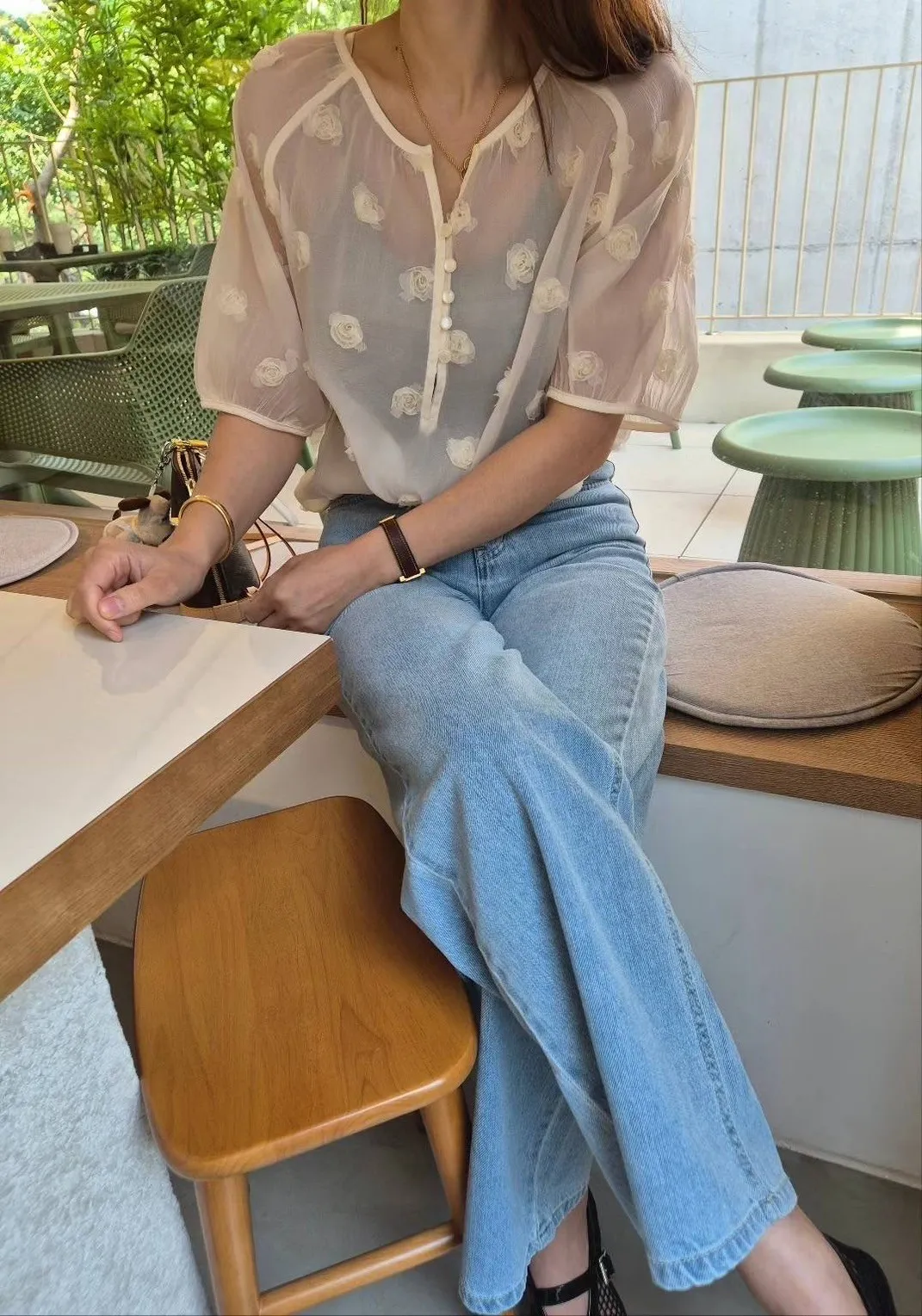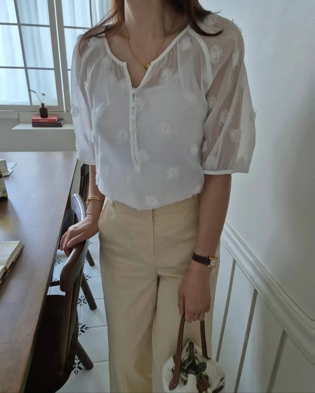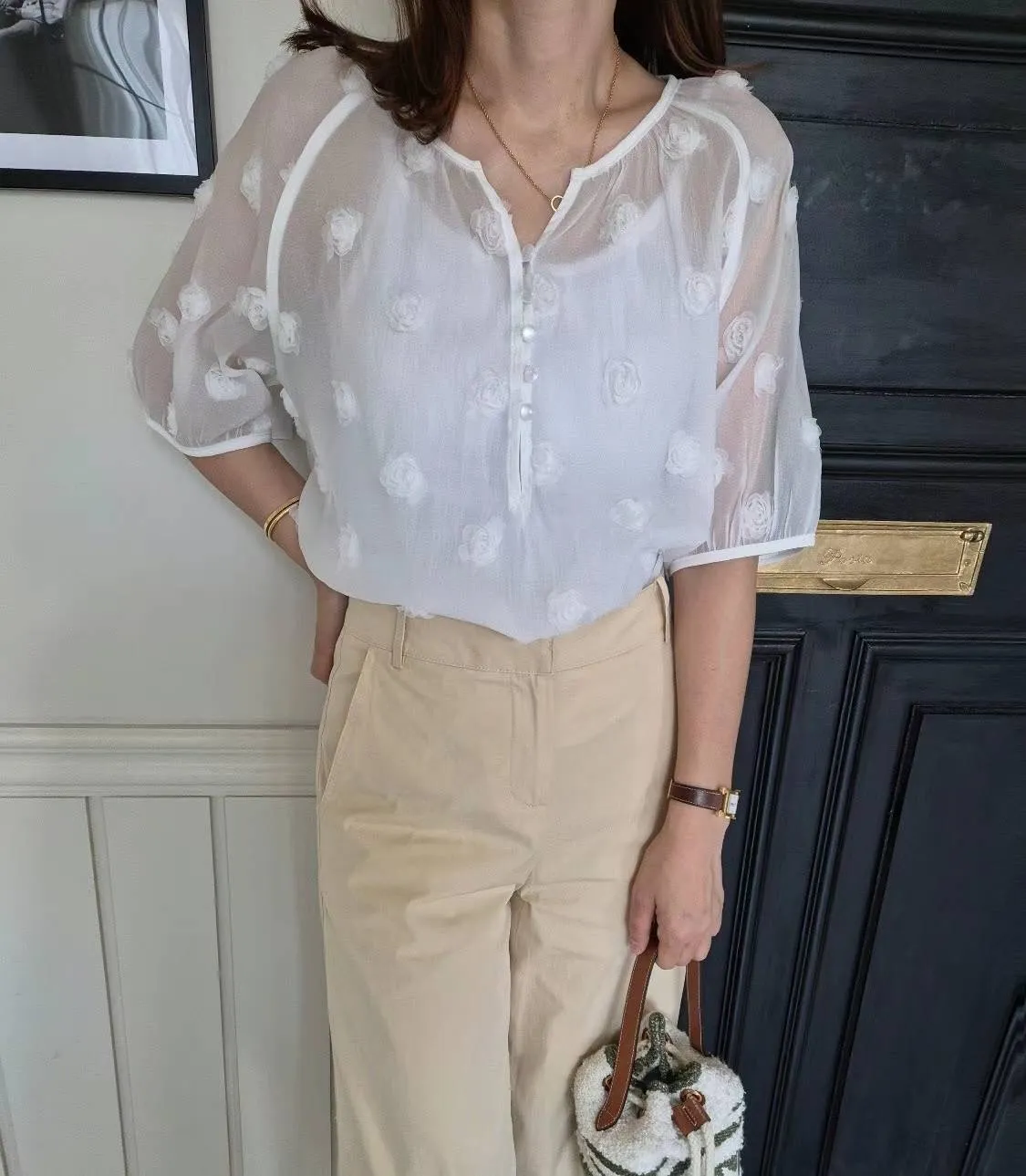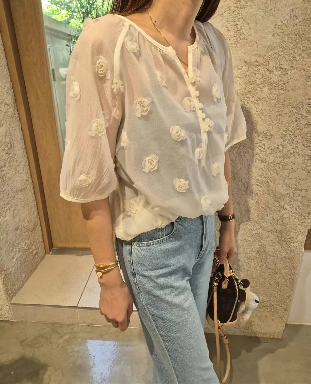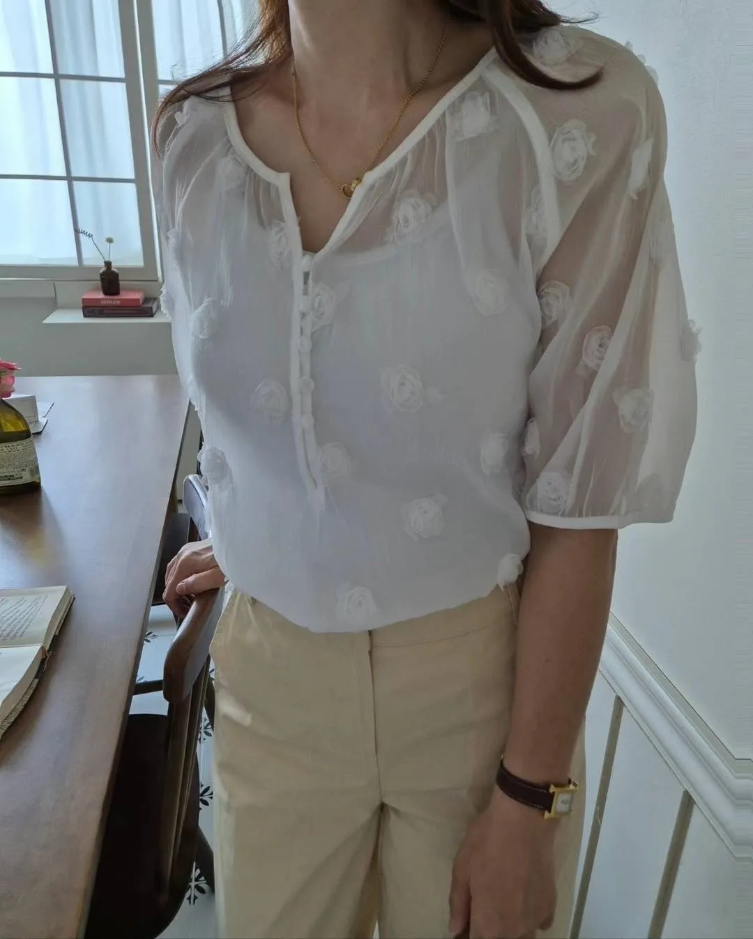 歐根紗 立體玫瑰花 排釦穿脫 極度輕盈 透光視覺 超敏肌略過
