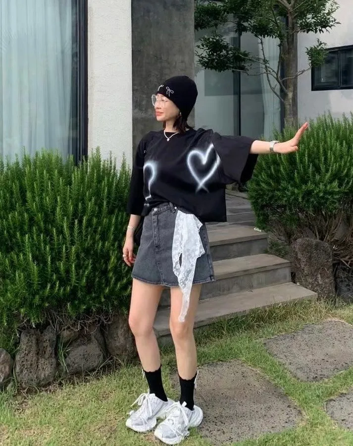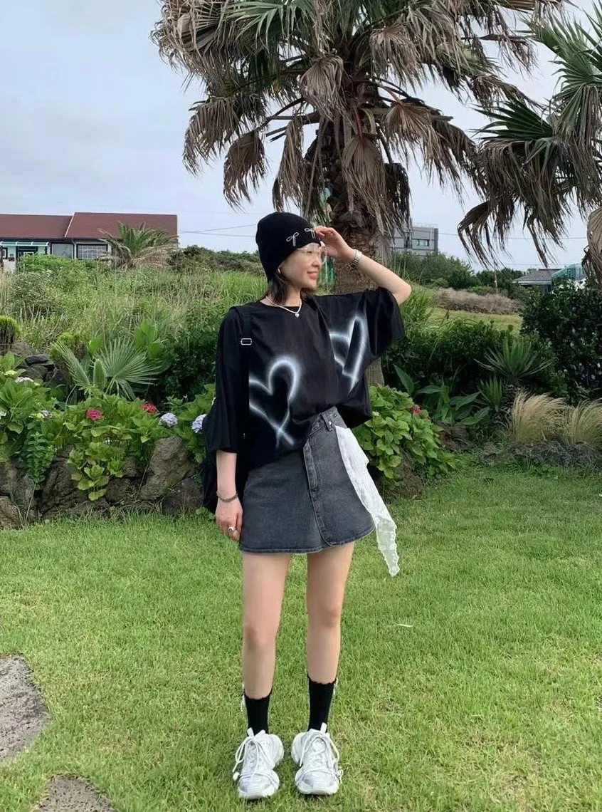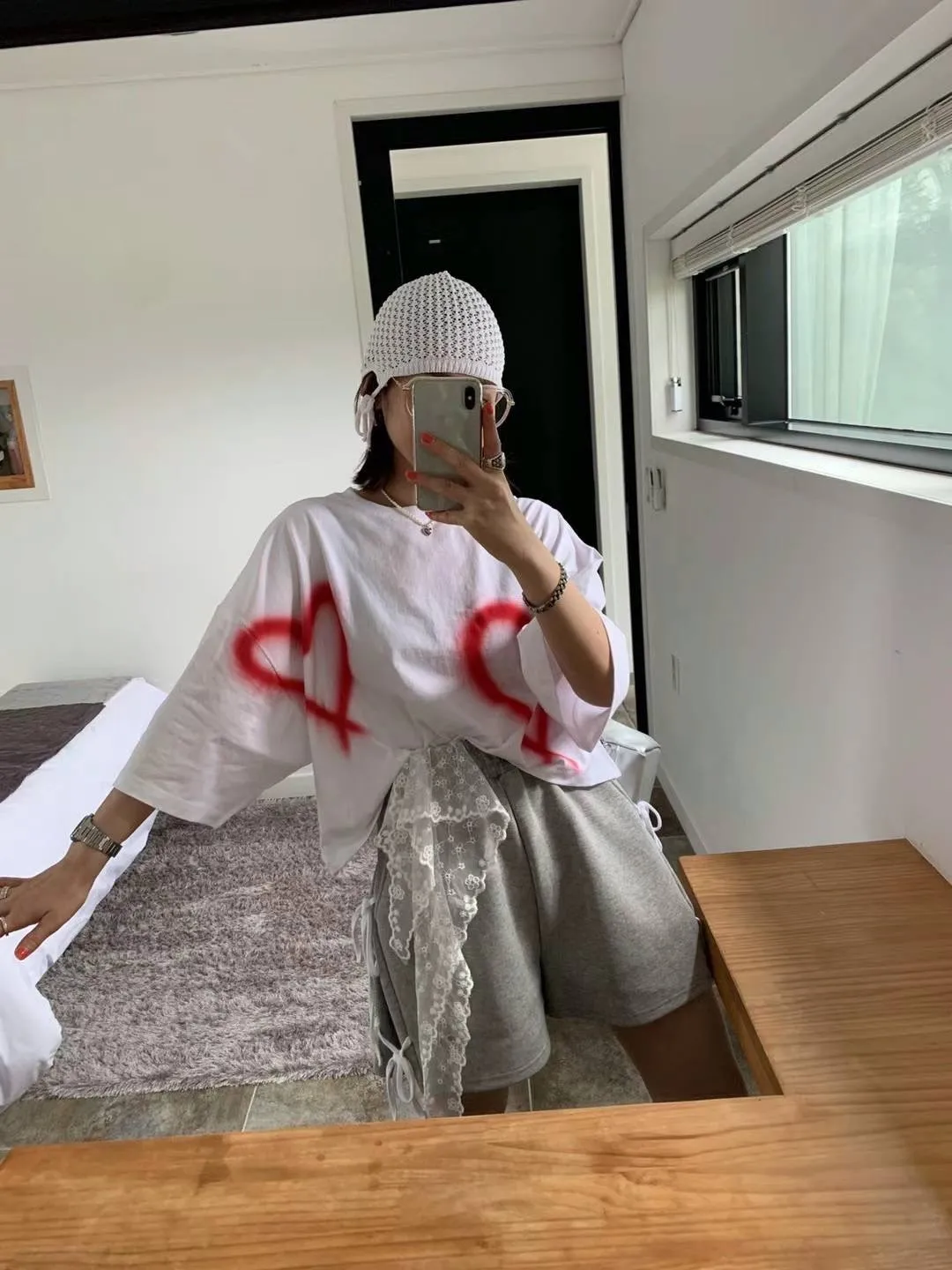 AA203 存在感街頭潮流噴漆愛心上衣 白 黑 官網價$699 線上價$669