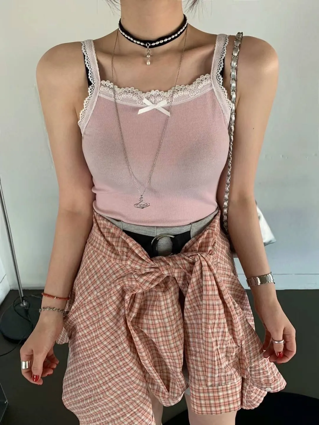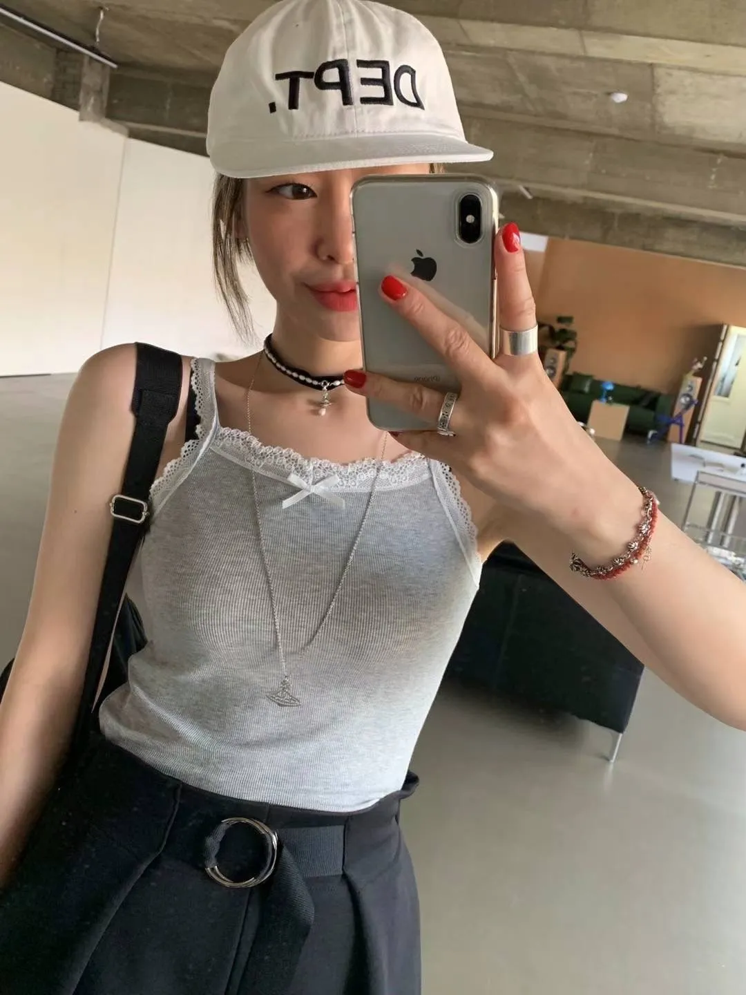 AA206新款蝴蝶結蕾絲背心 白 灰 粉 黑 官網價$510 線上價$480