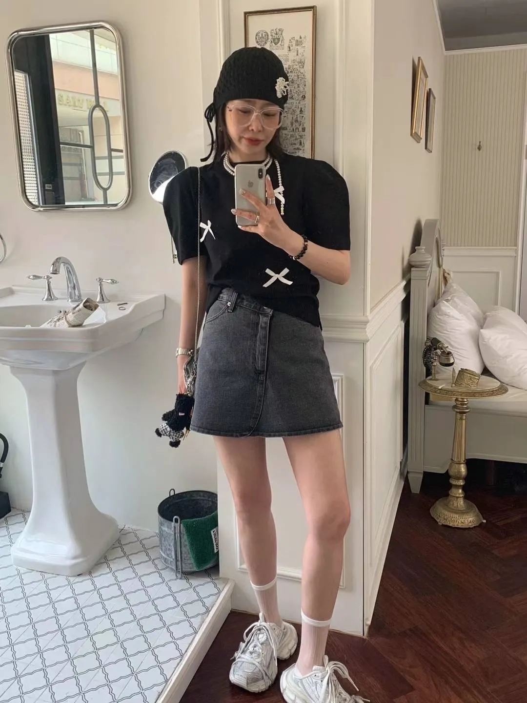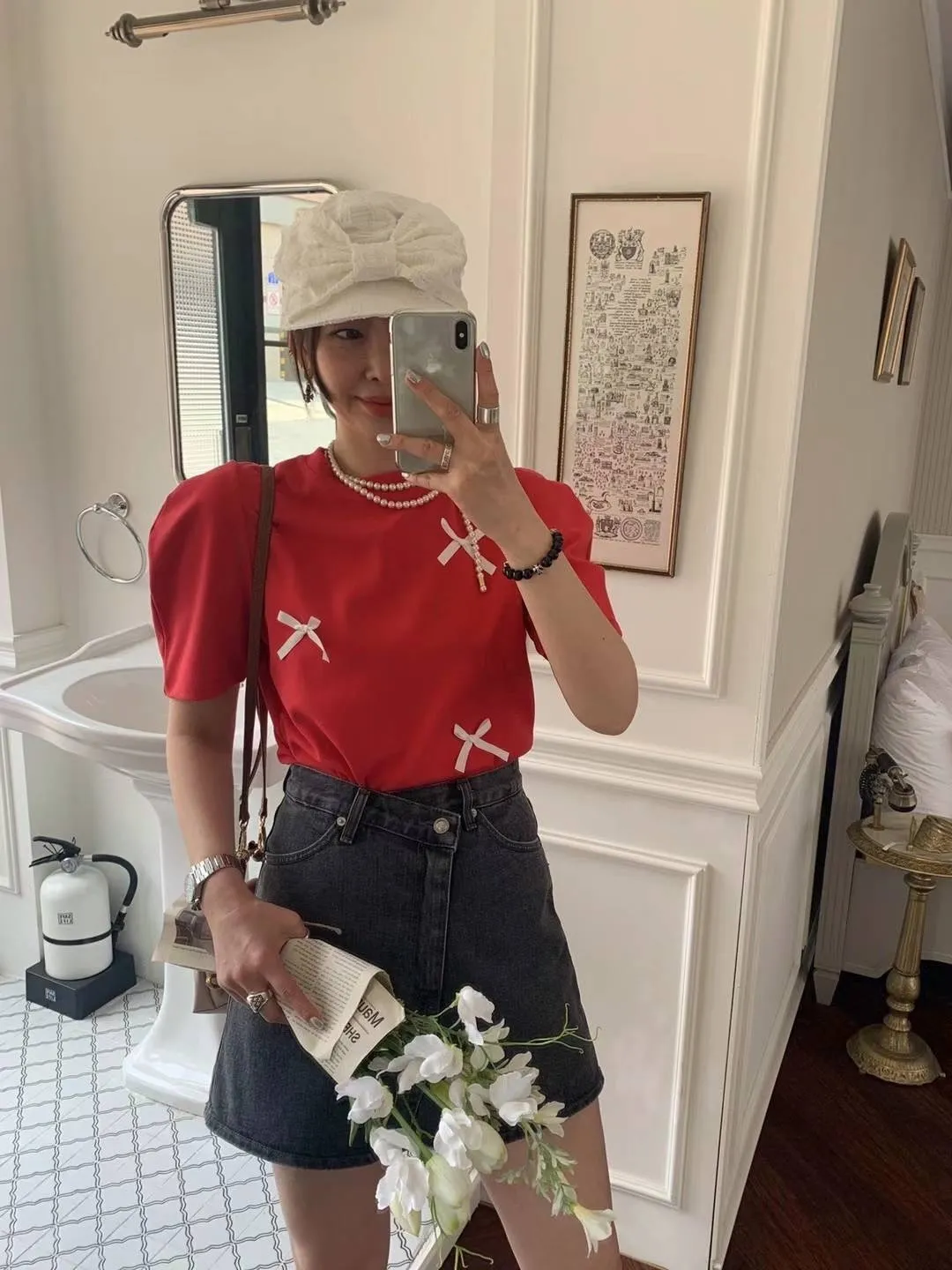 棉 質感磅數 不易皺太空棉 微微公主袖 雙側開叉 立體緞帶蝴蝶結