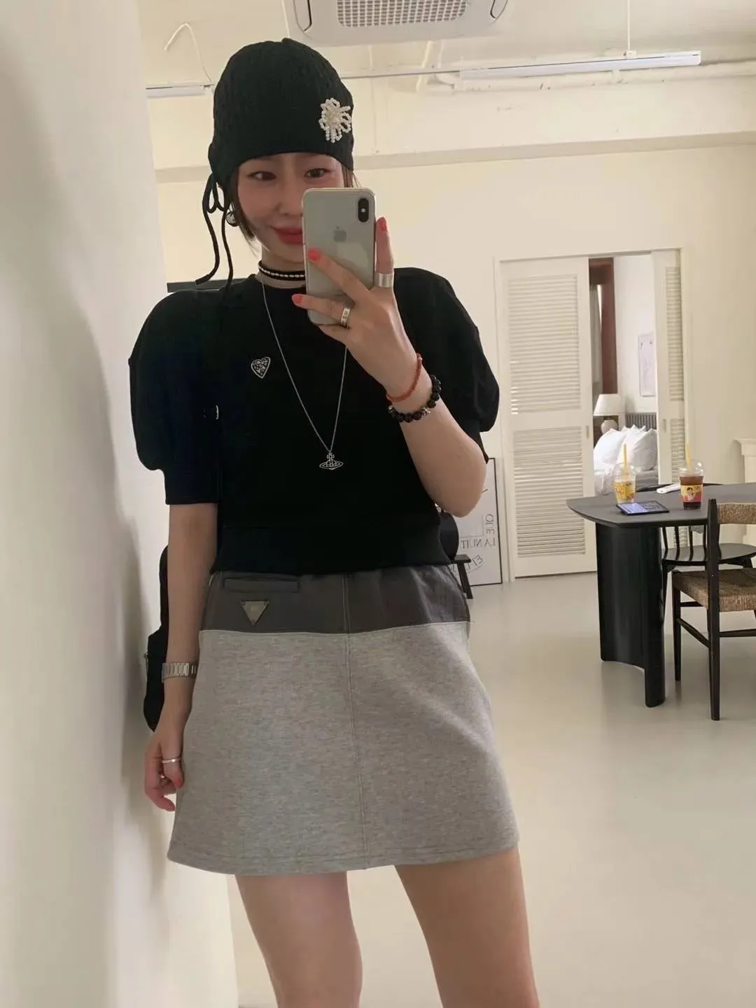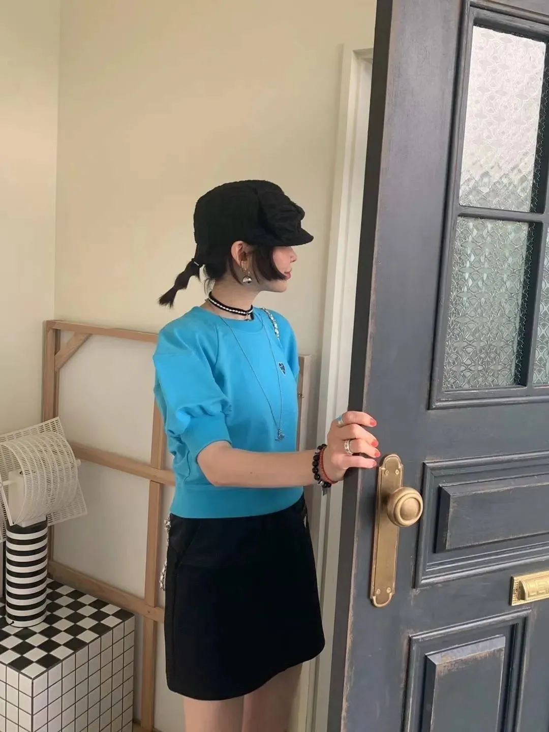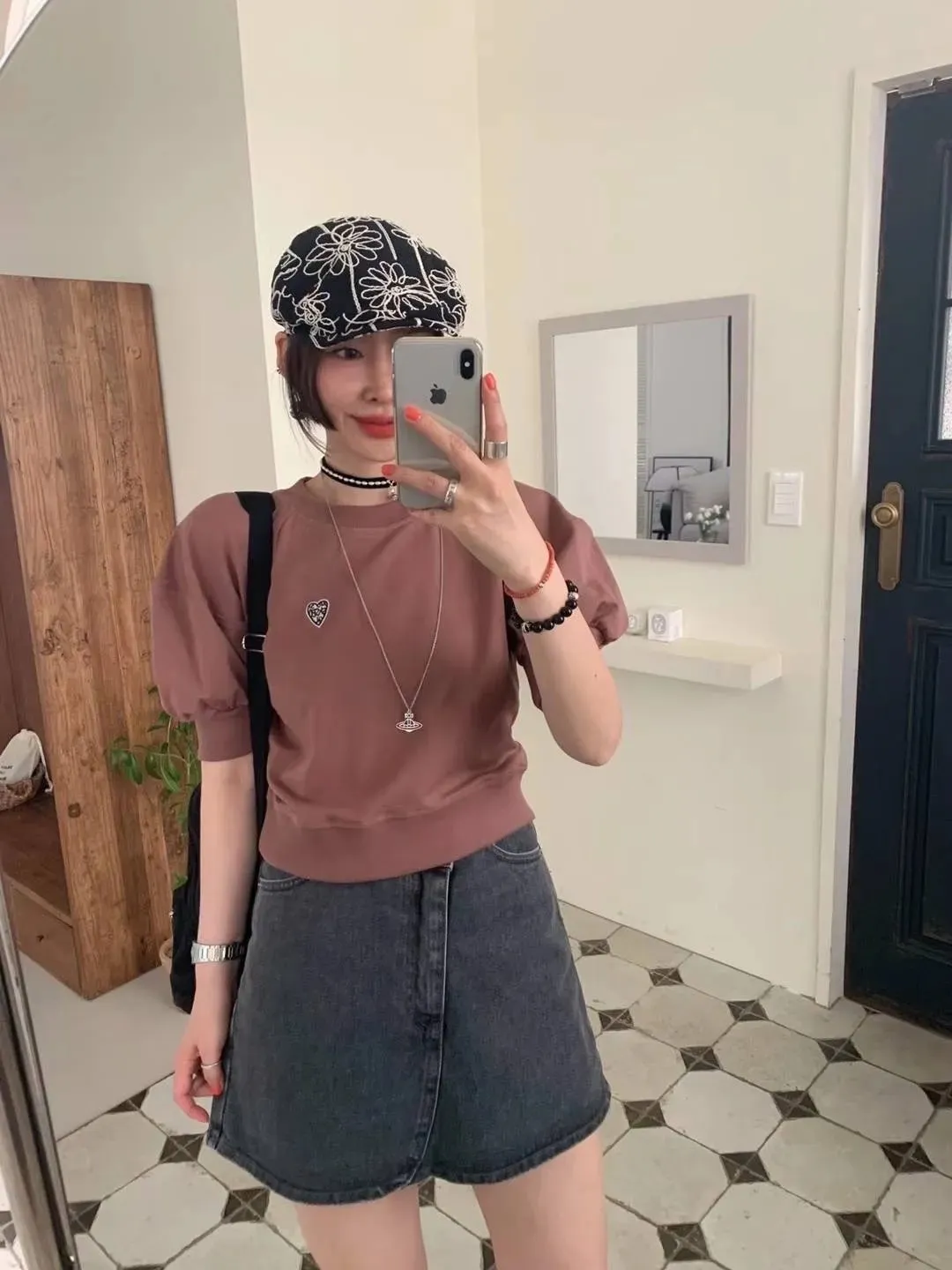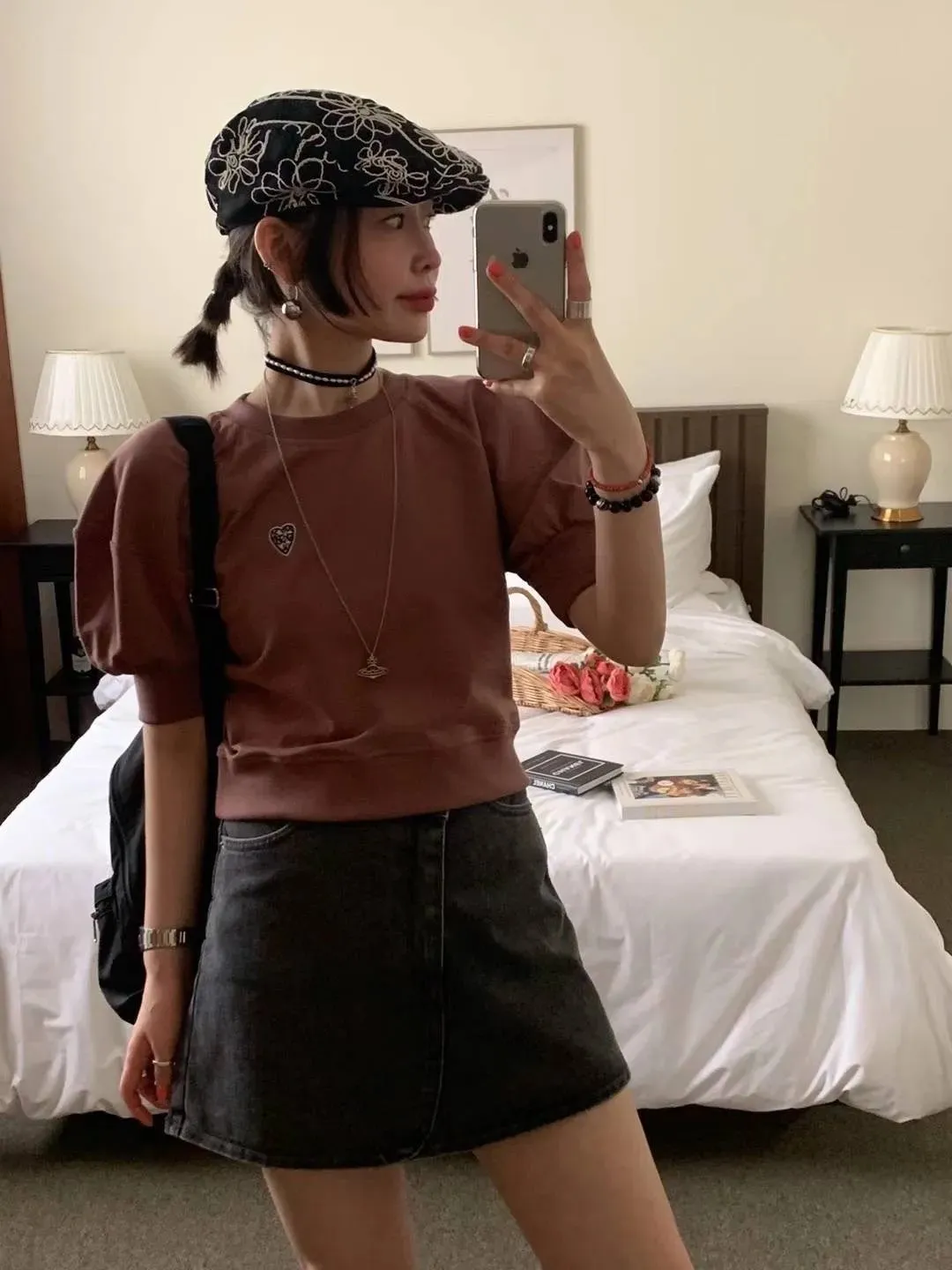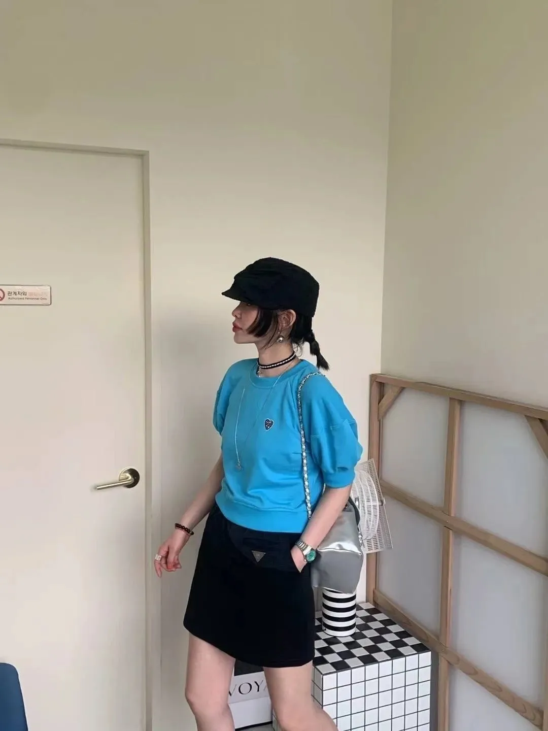 棉 薄款 下擺鬆緊 可愛蓬蓬袖 短版好比例 刺繡愛心小LOGO