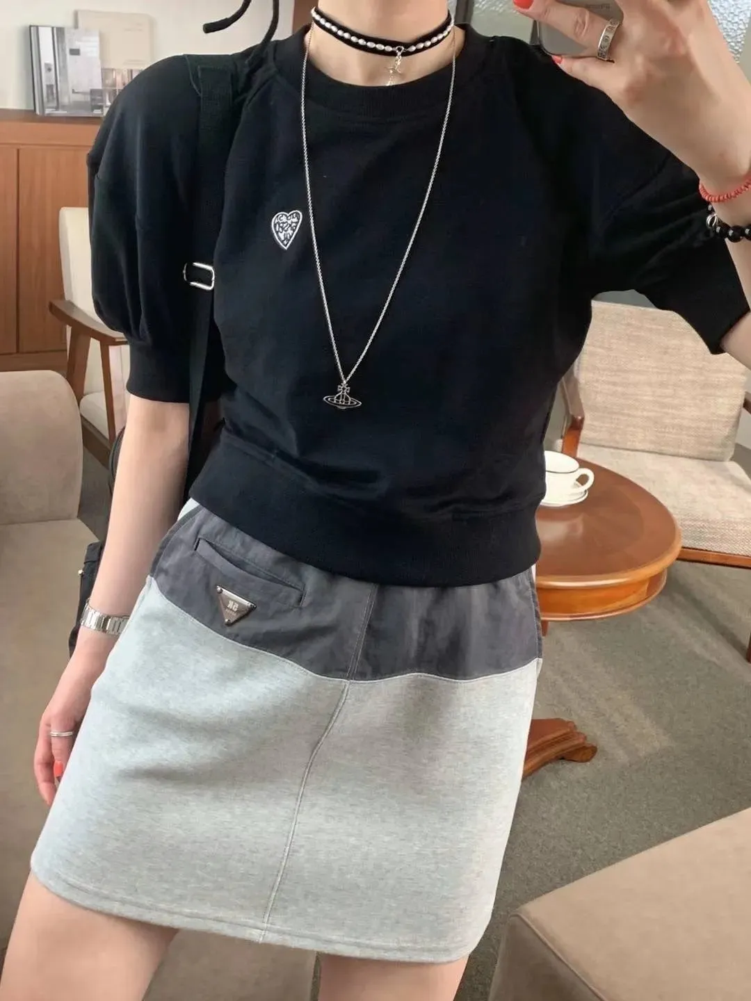 AA215回購款薄款刺繡小愛心短袖大學T(原HJ241) 藍 白 咖 黑 官網價$810 線上價$780