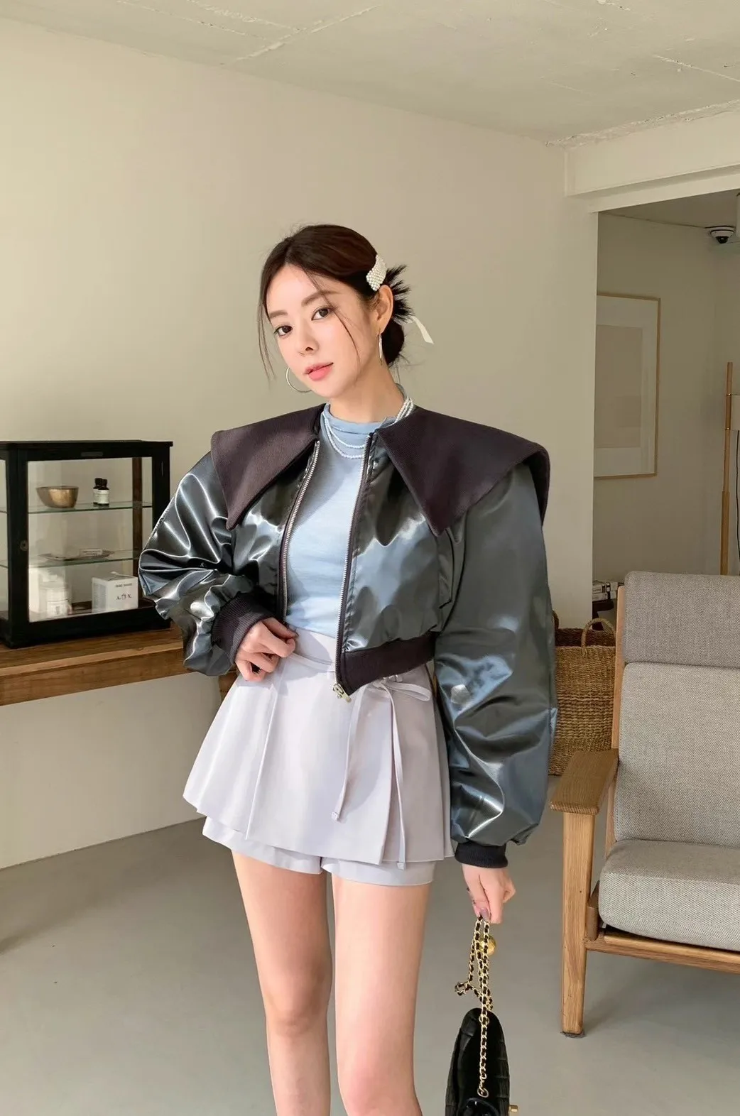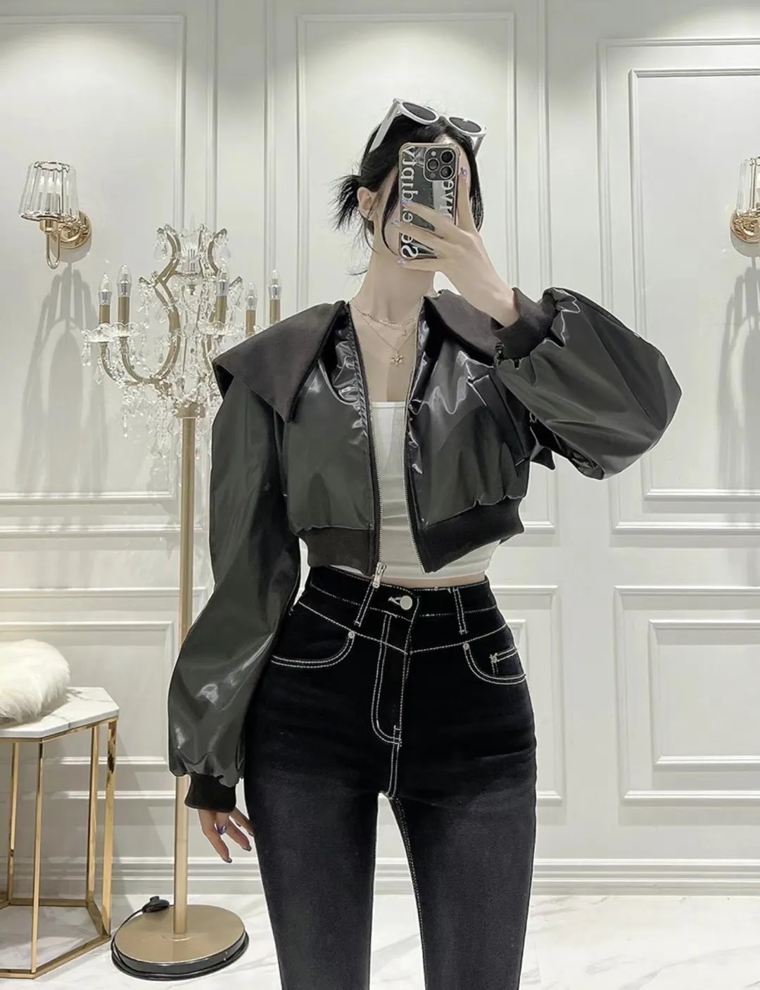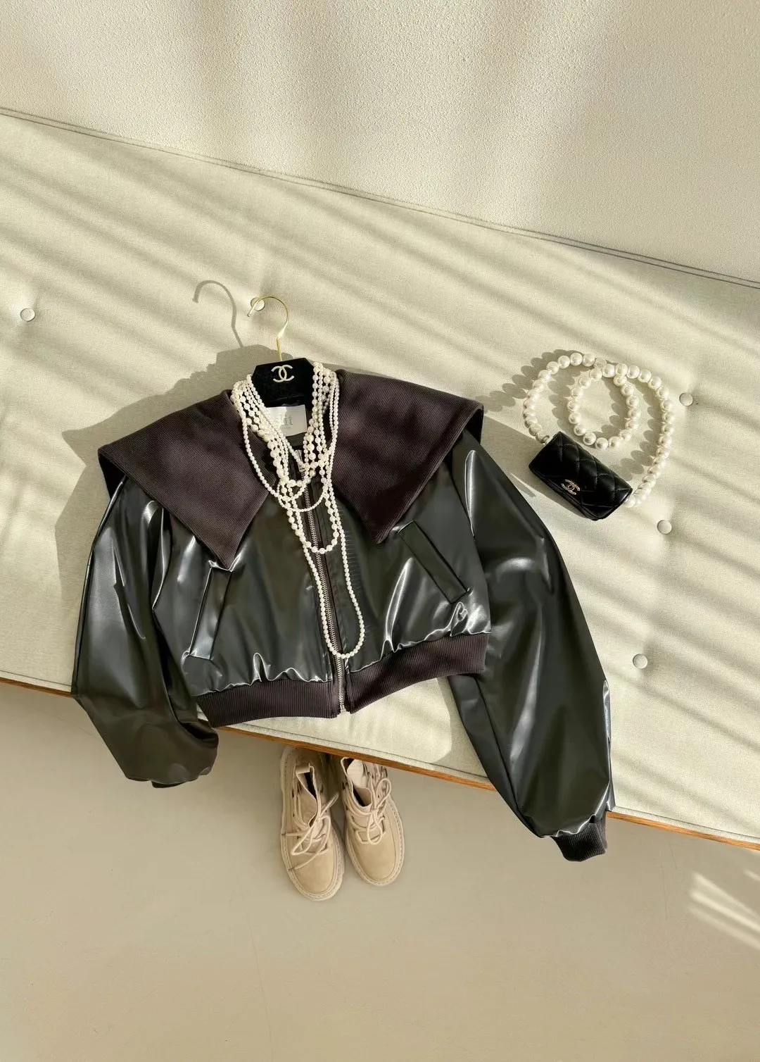 AA234特價大翻領皮革短版好比例外套 特價$1250