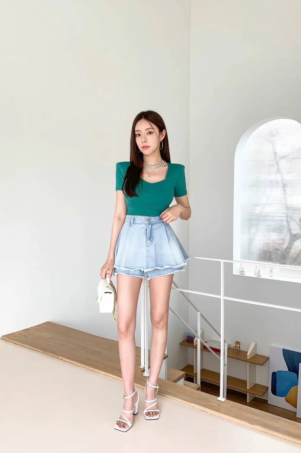 AA246回購款雙層設計感丹寧褲裙(原KM081) S M L官網價$1090 線上價$1060