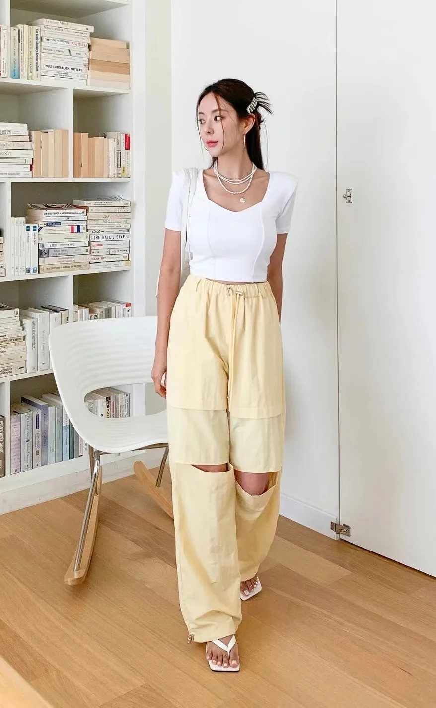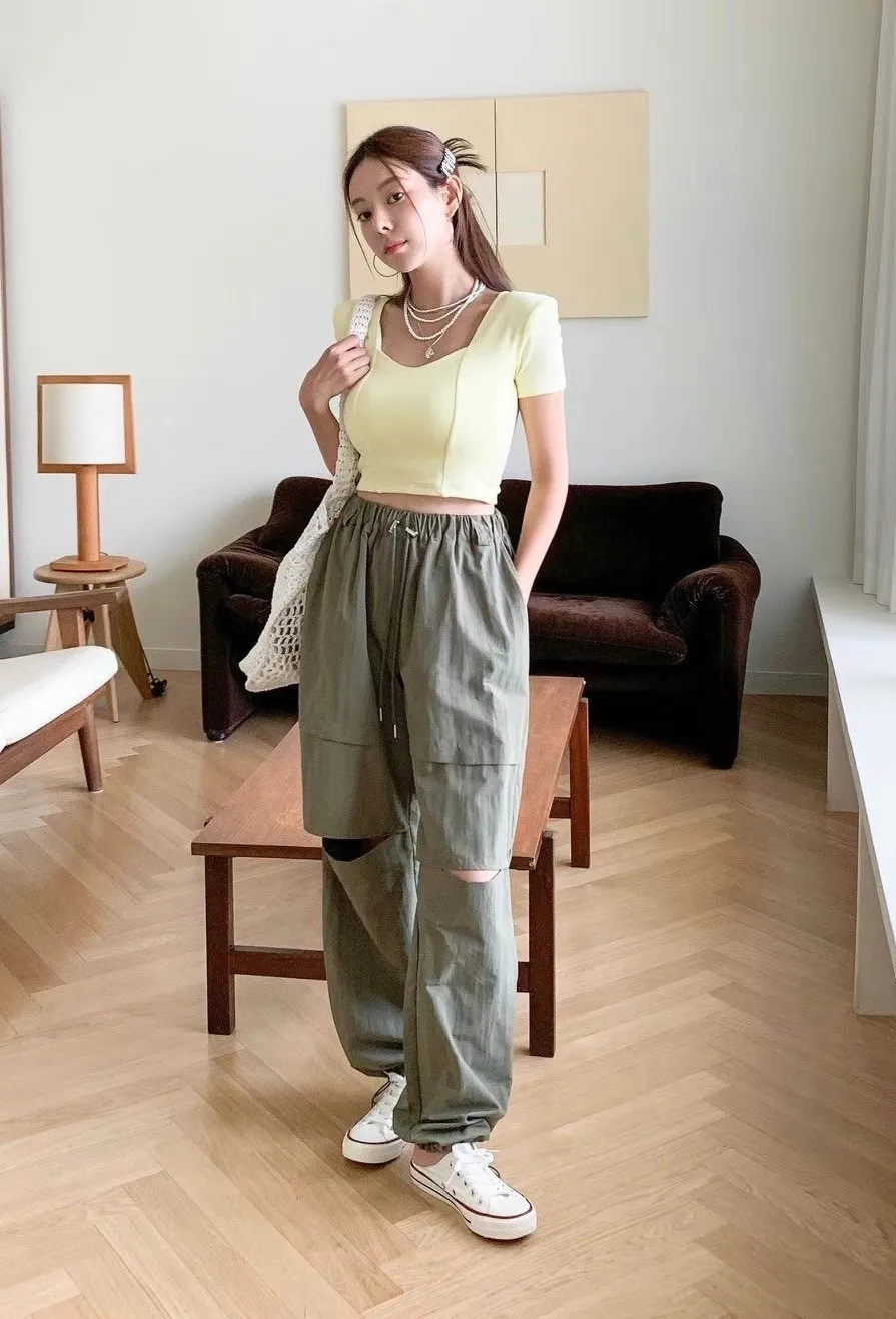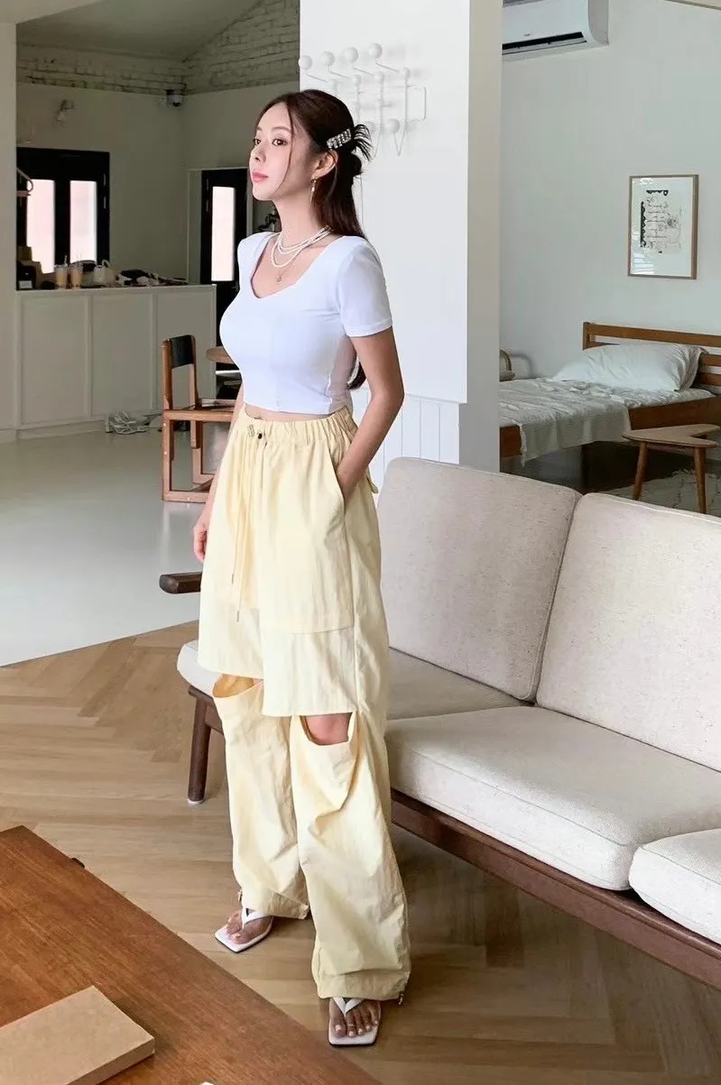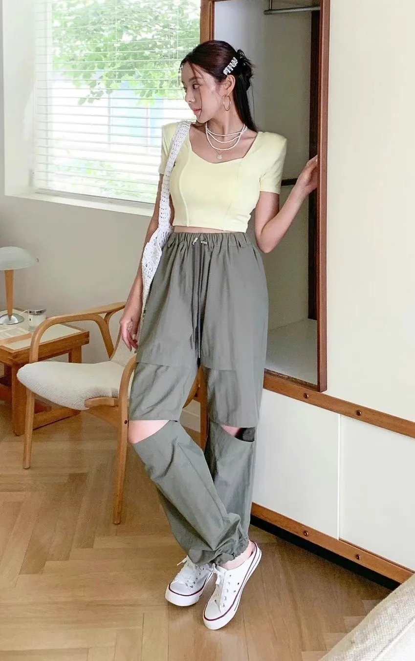 AA247新款輕盈腰抽繩Y2K潮流長褲 黃 綠 黑 官網價$1220 線上價$1190
