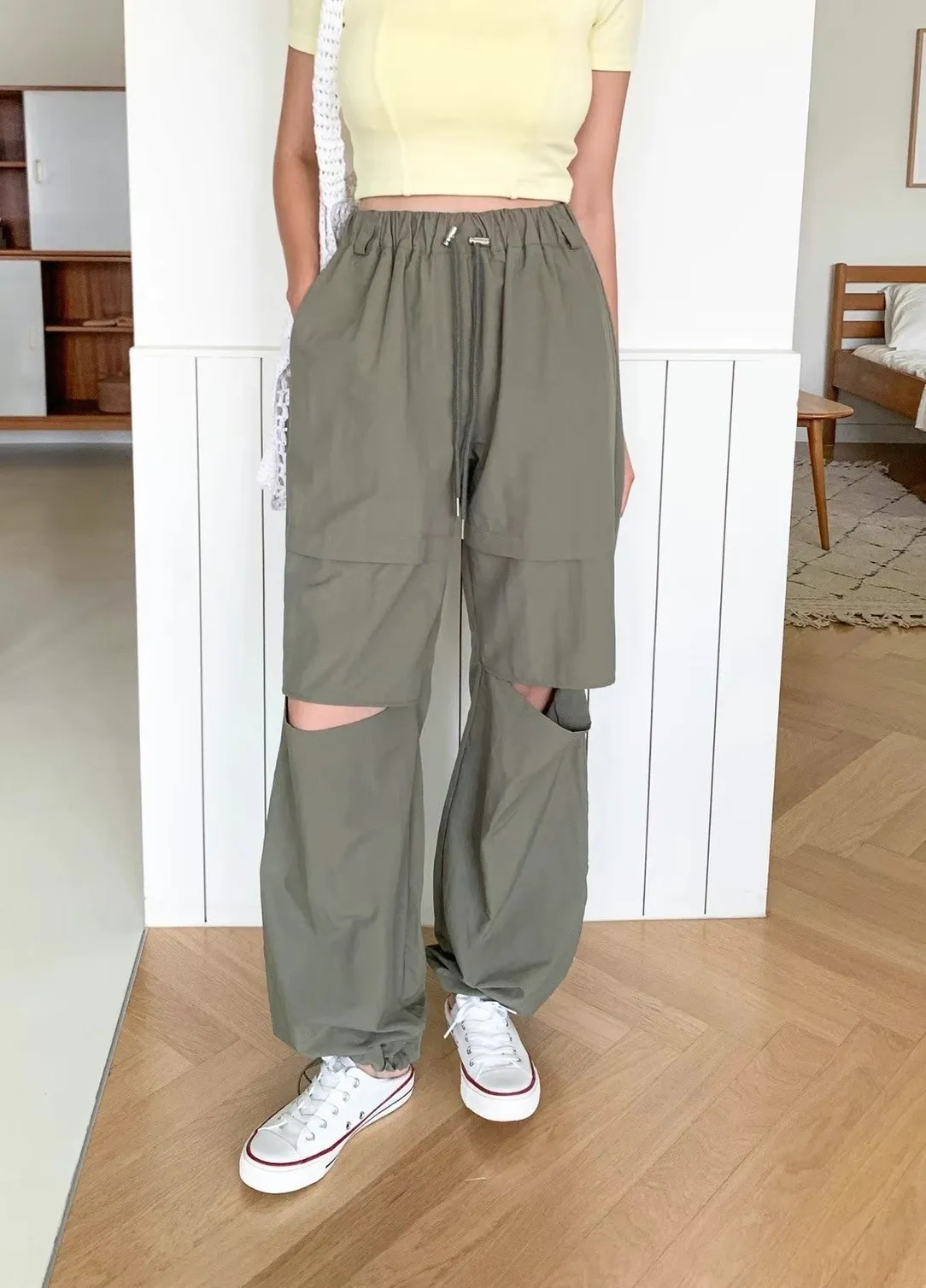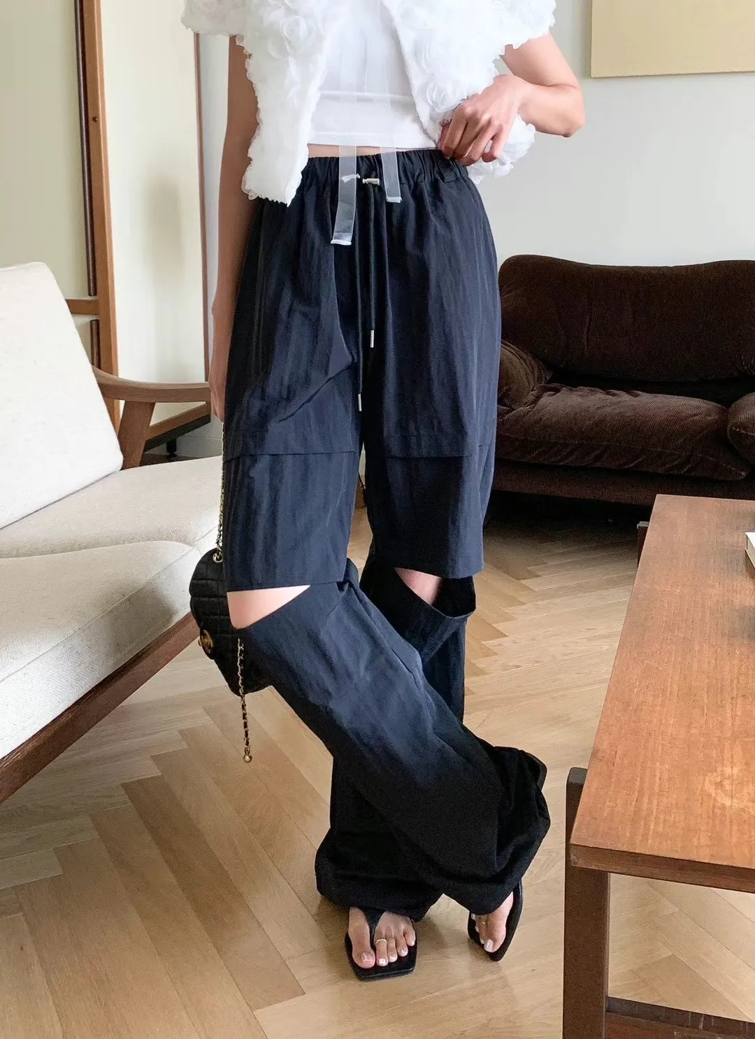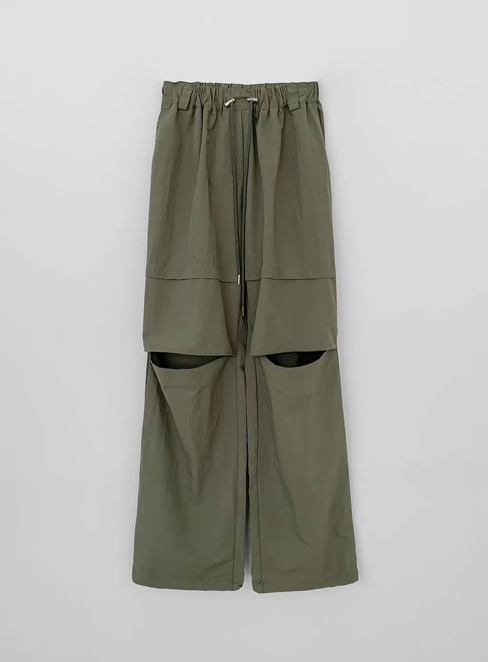 尼龍,全腰鬆緊有抽繩 有口袋 膝蓋簍空