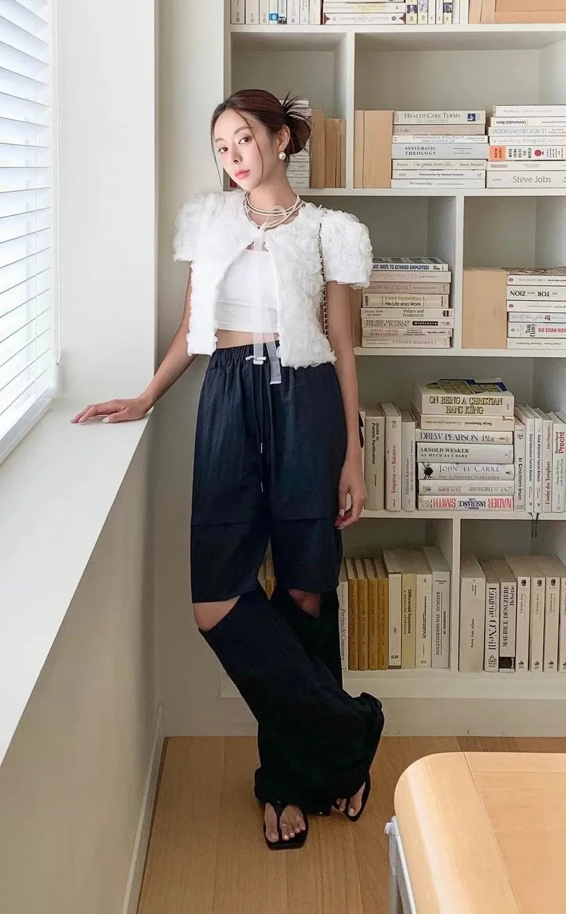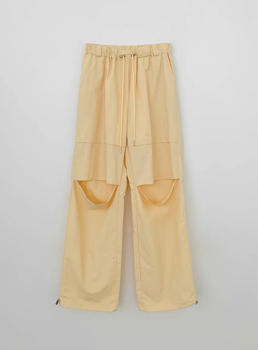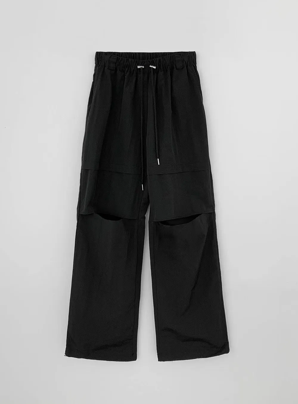 尼龍,全腰鬆緊有抽繩 有口袋 膝蓋簍空