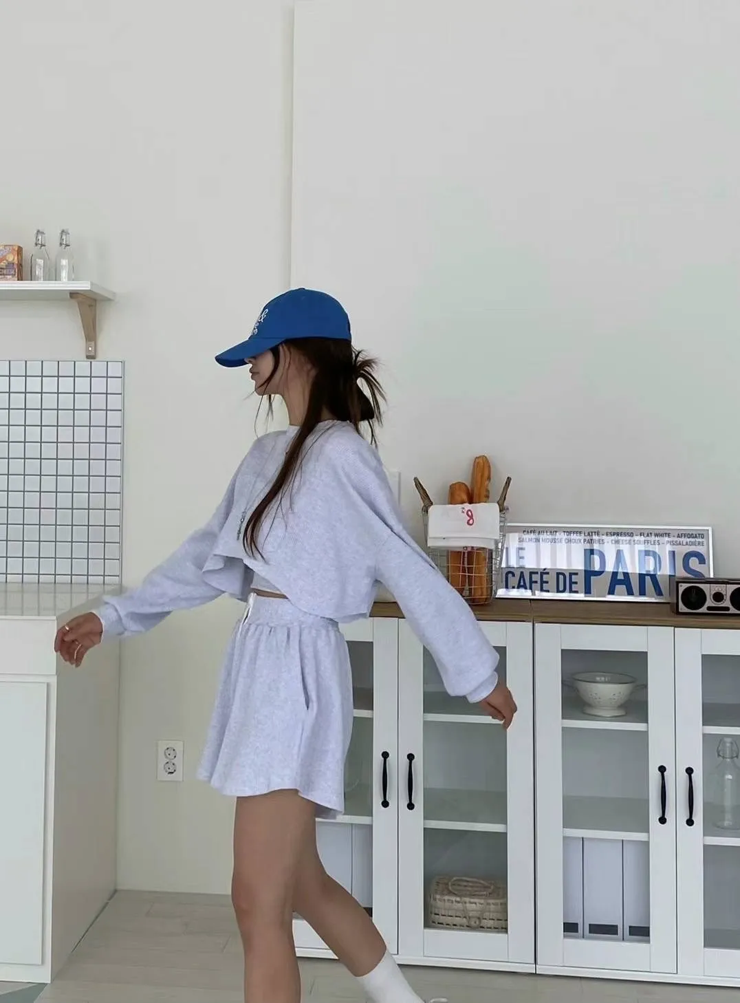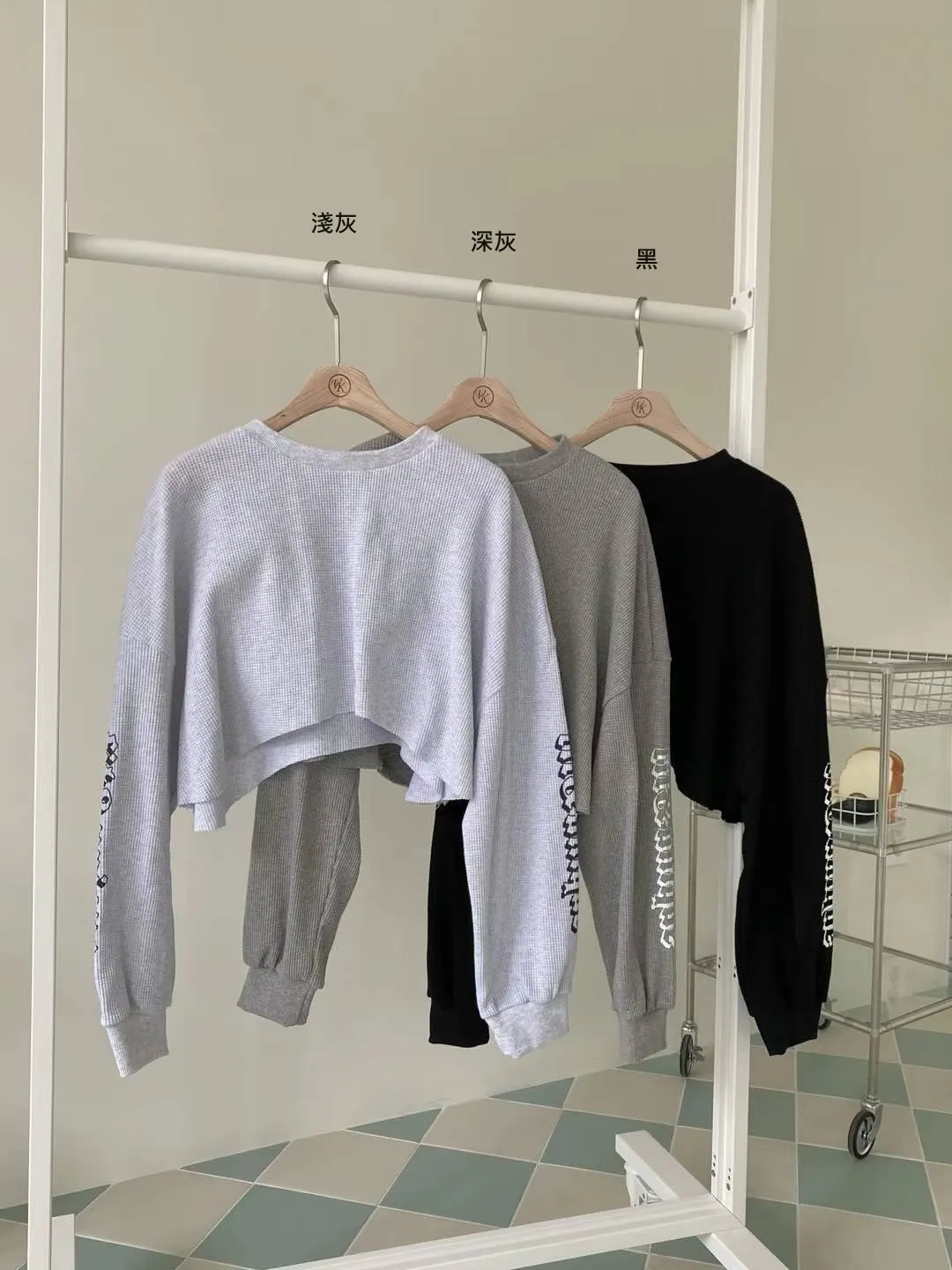 棉 華夫格紋 短版整套穿搭 弧度露腰好比例 空間寬鬆