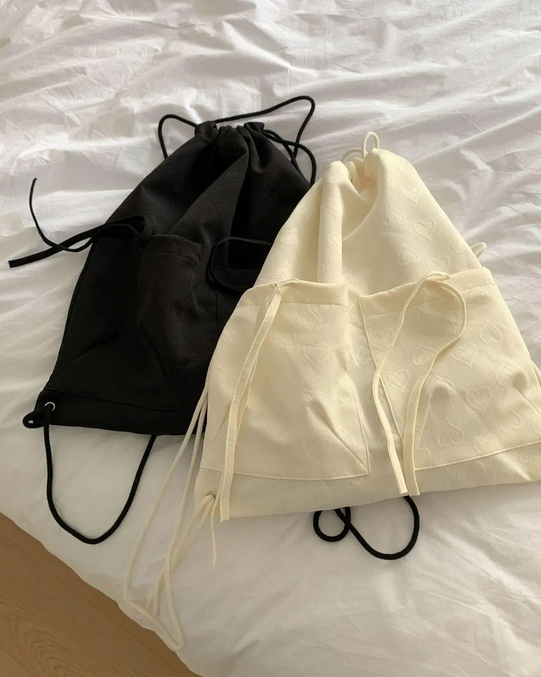 棉+尼龍 潮流蝴蝶結 愛心花紋布料 有內裡 肩帶可調 束口閉合