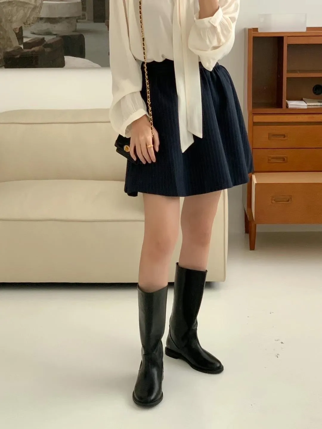 棉+聚酯 有內裡 腰間雙釦 自然傘擺 後腰鬆緊 無口袋