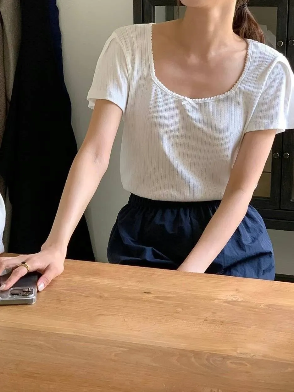 棉+彈力 柔Q舒適體感 空間舒適 方領顯瘦 薄款適合夏天