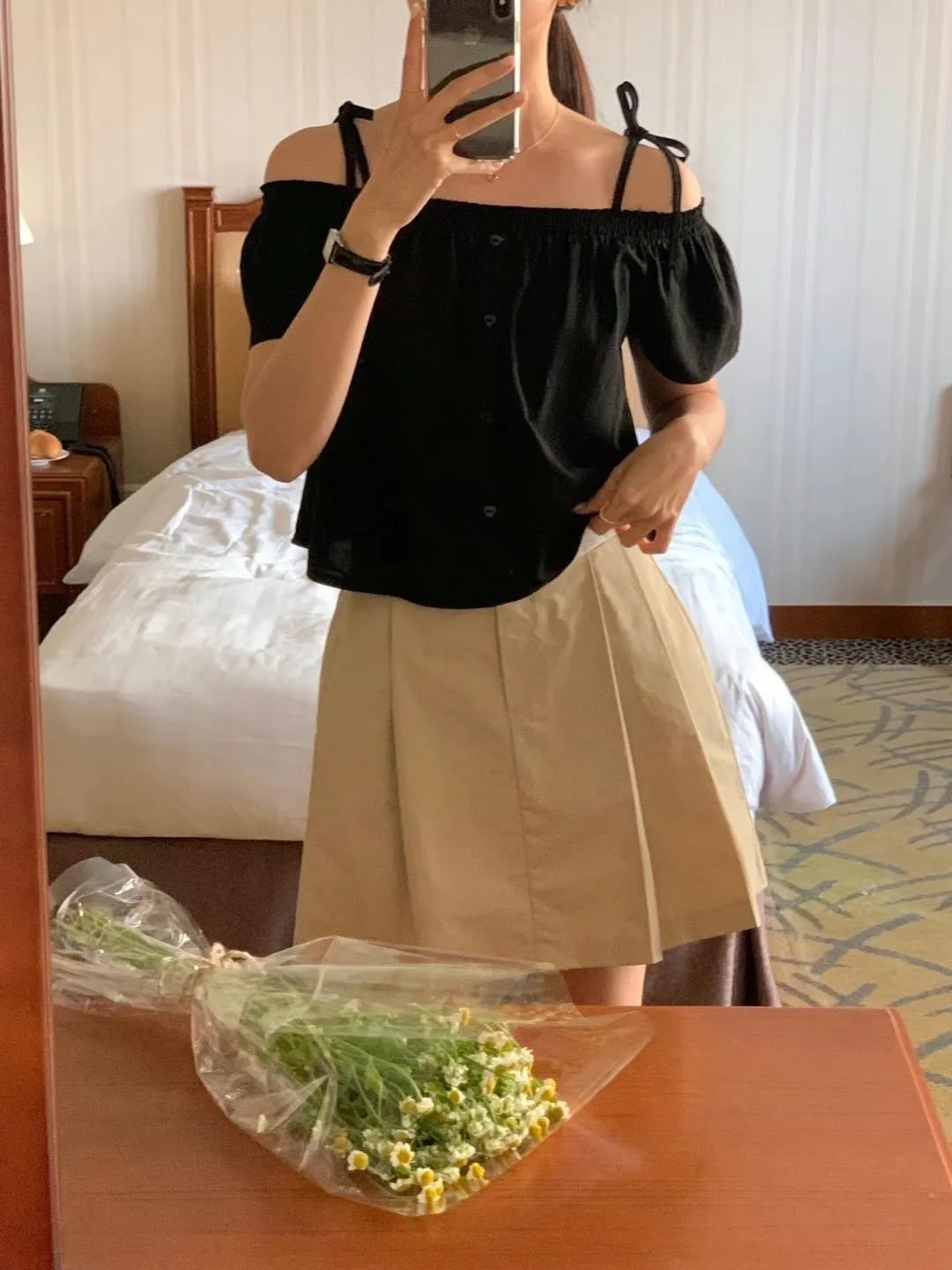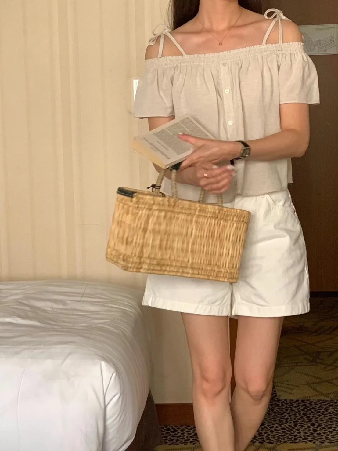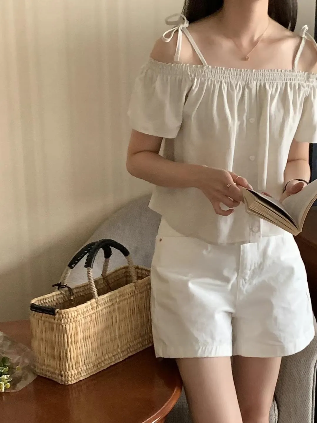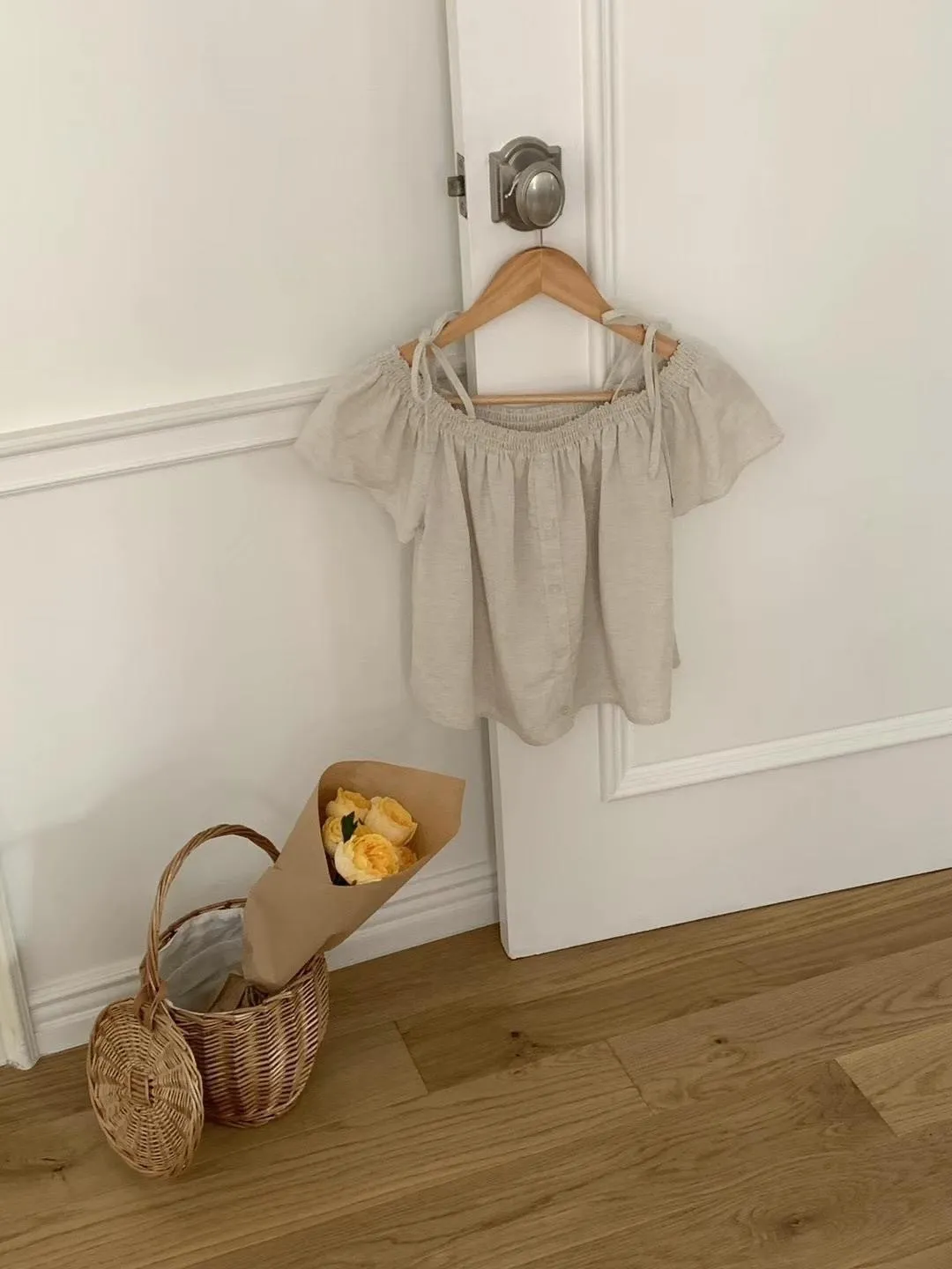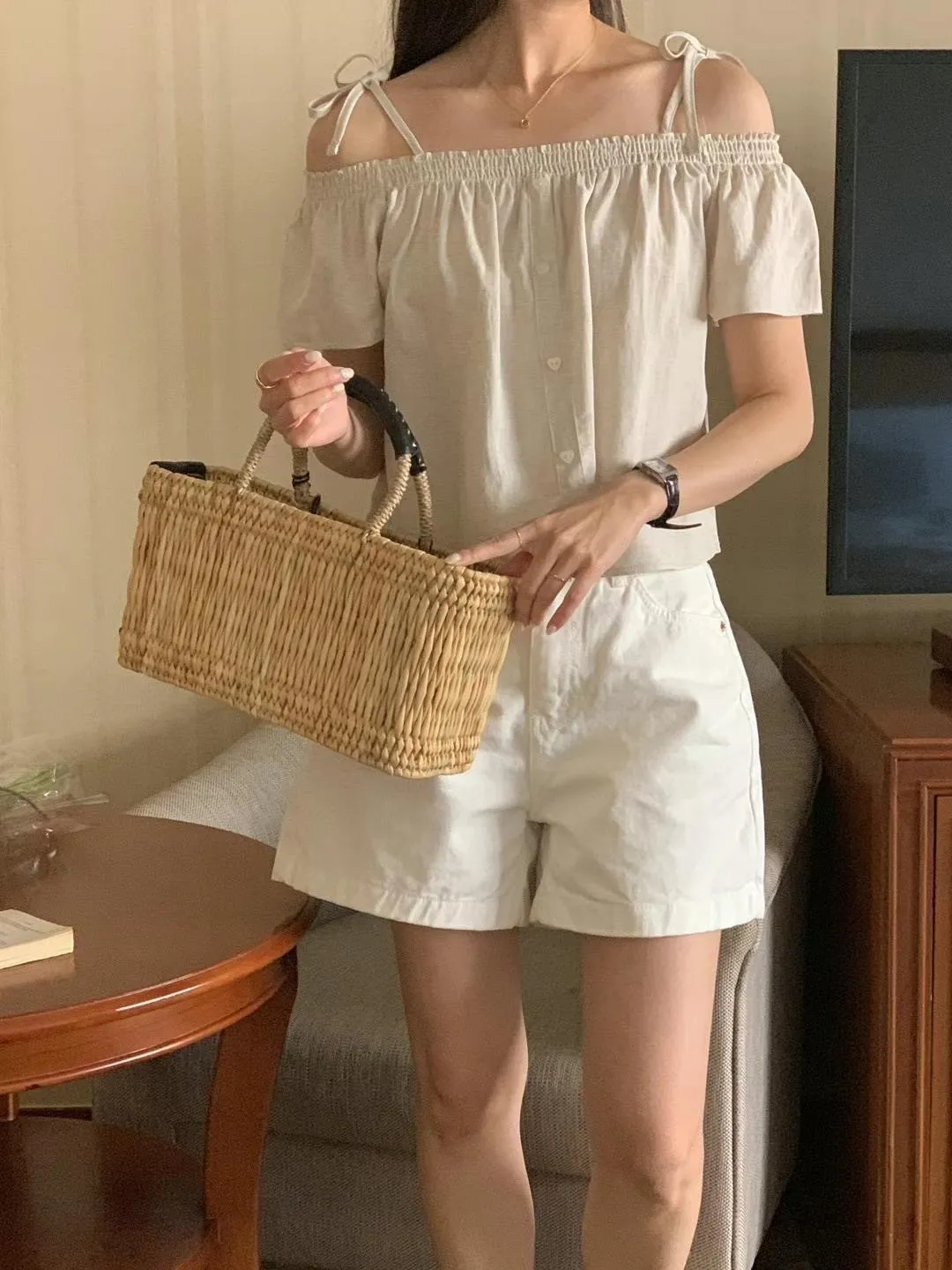 棉麻 透氣舒適 兩面穿 釦子裝飾 可拉一字領