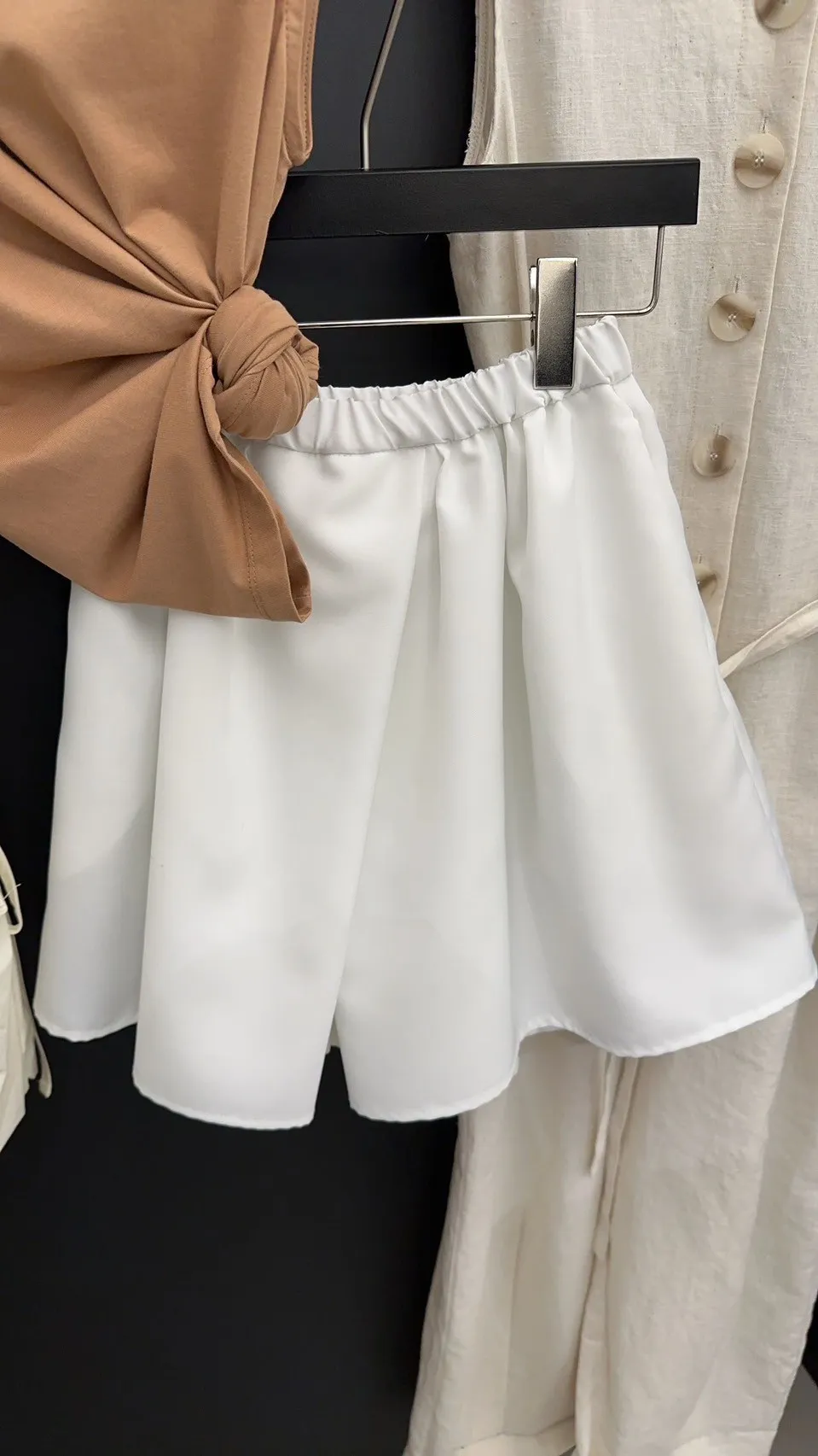 聚酯 挺料版型 腰有鬆緊 有口袋 視覺裙子實際褲子