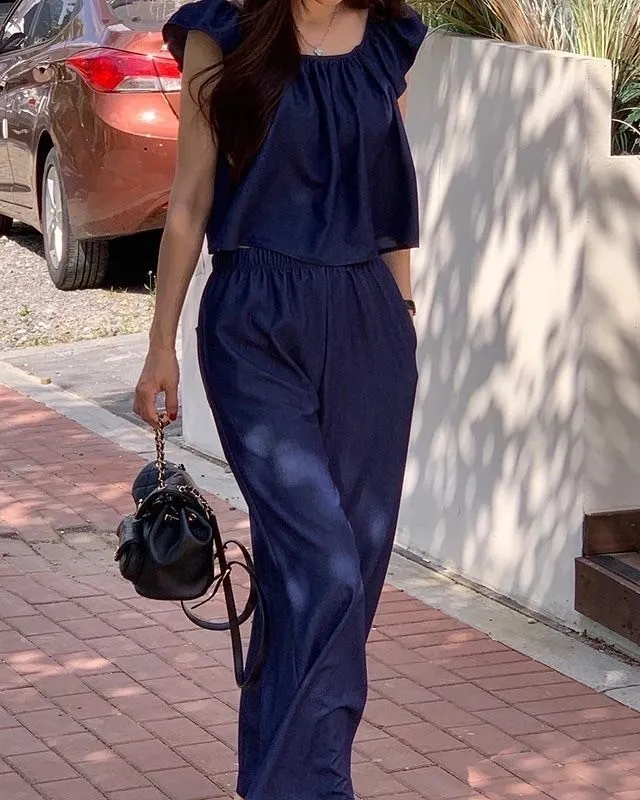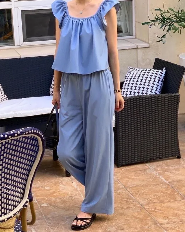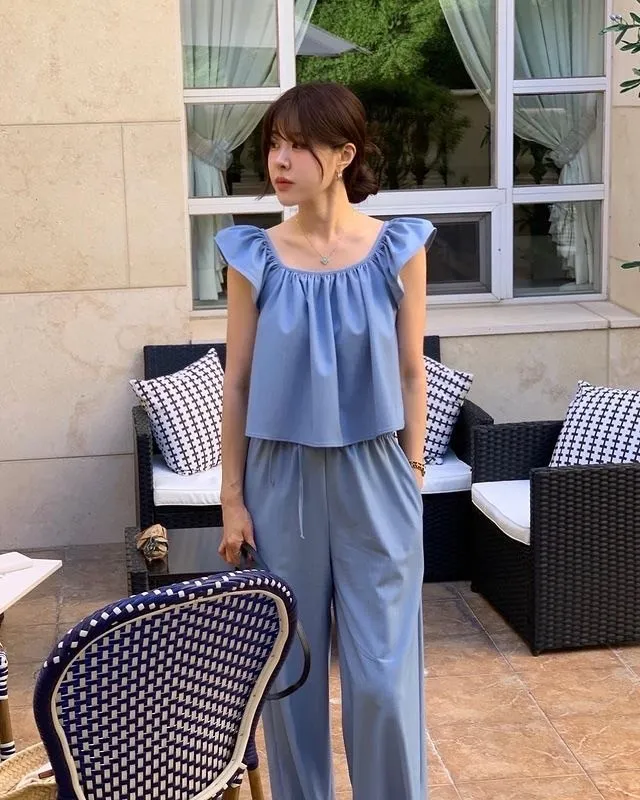 AA465套裝的縲縈氣質娃娃裝上衣 淺藍 深藍 官網價$1020 線上價$990