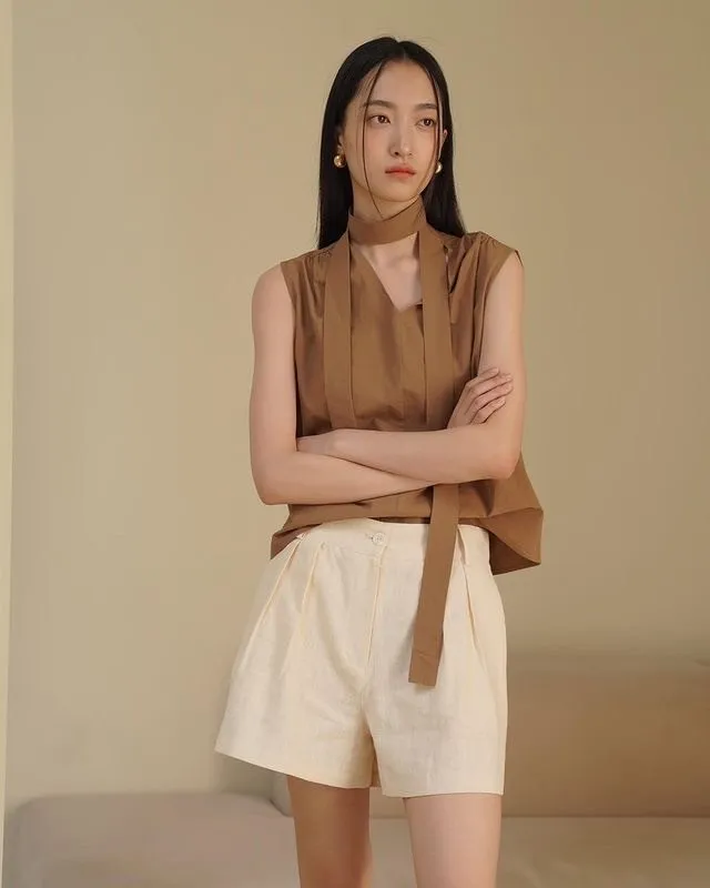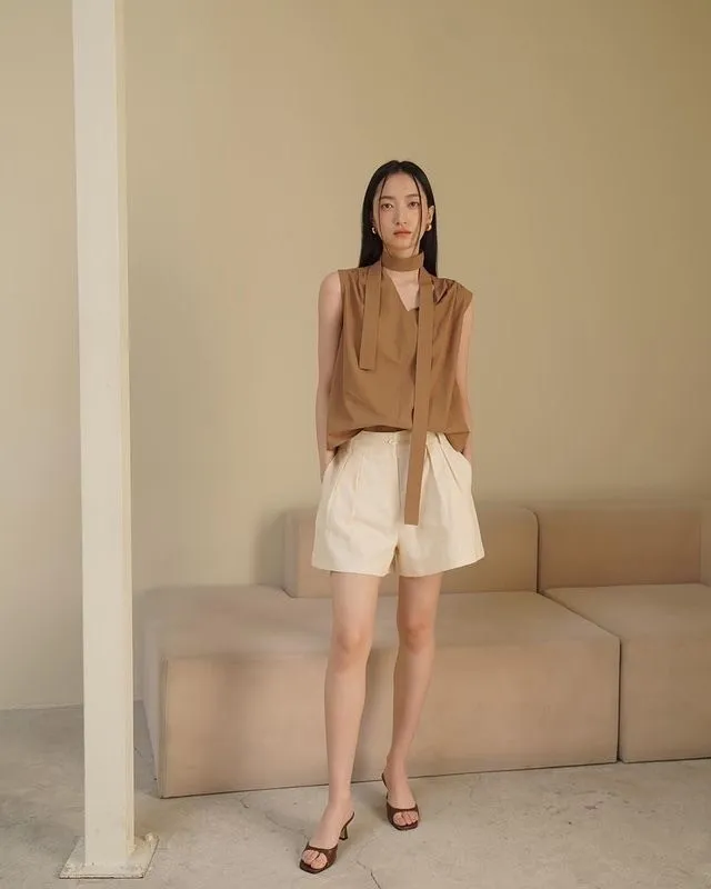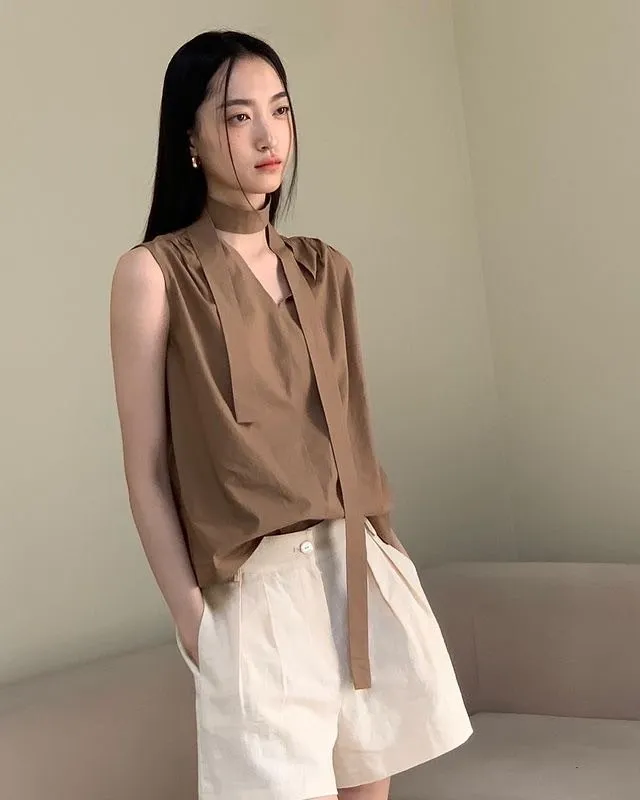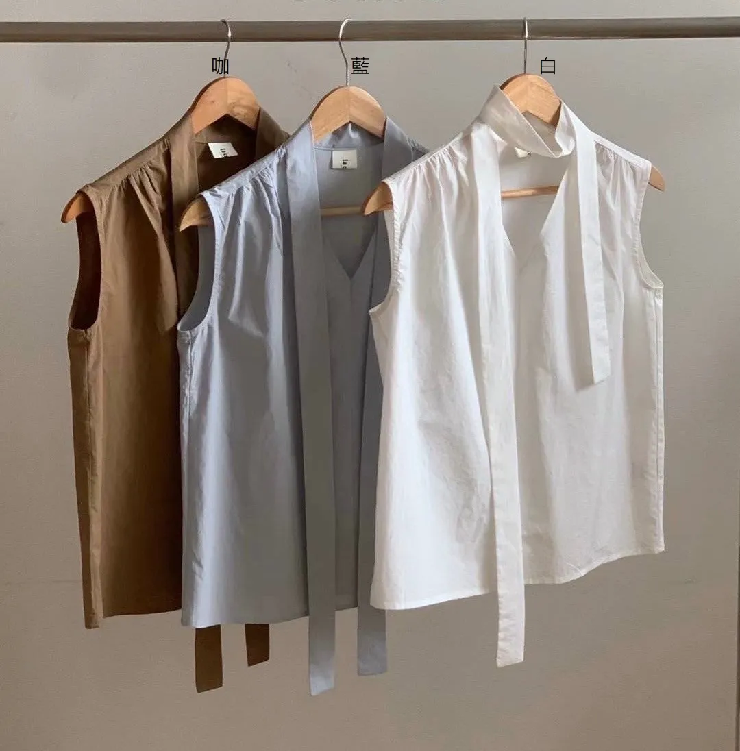 AA467氣質胸綁帶無袖上衣 白 咖 藍 官網價$960 線上價$930