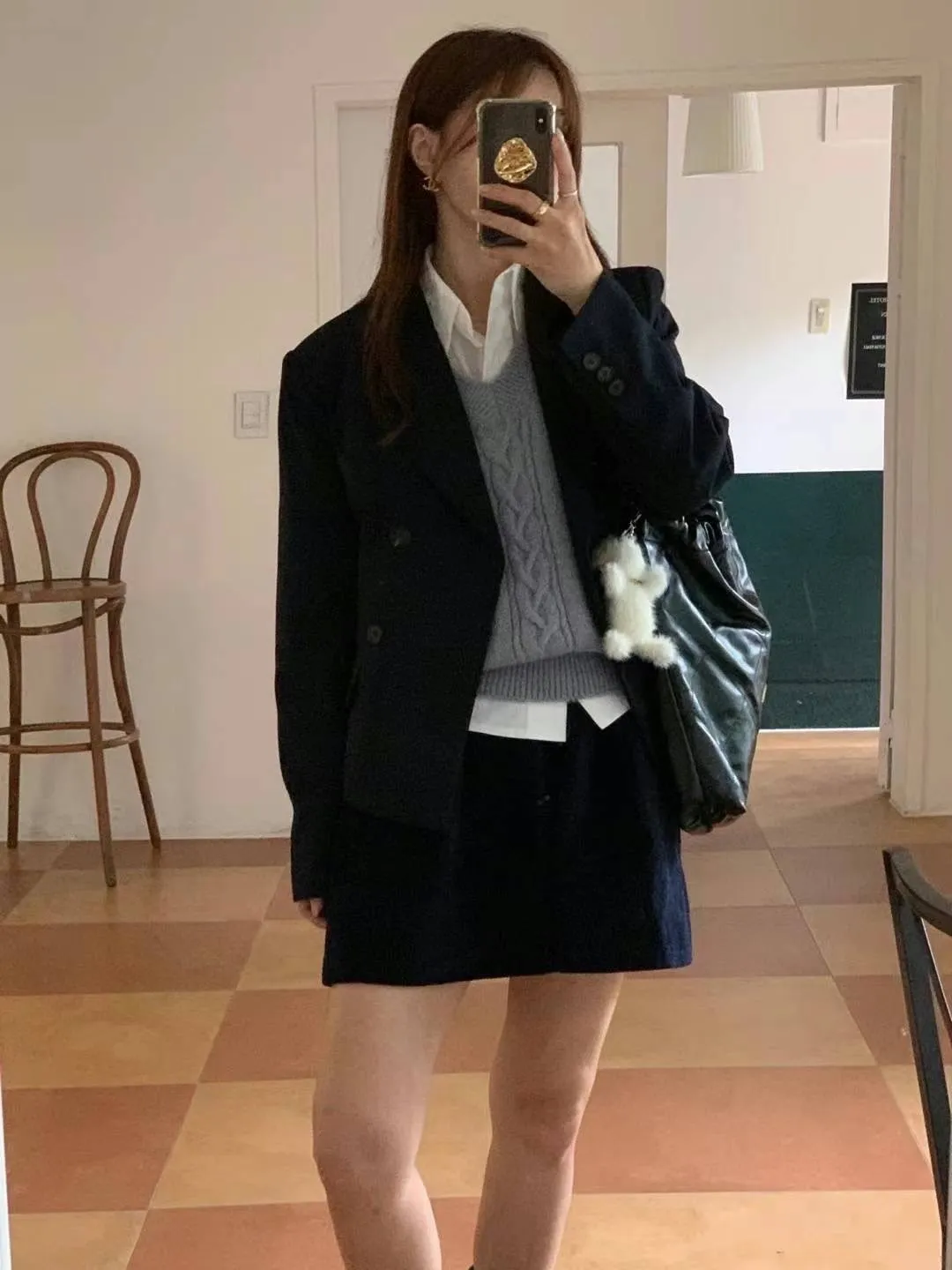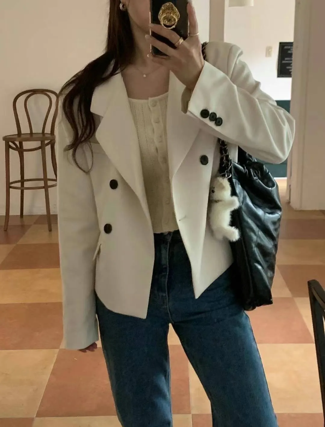 縲縈+聚酯 手袖釦子 雙排釦 有口袋