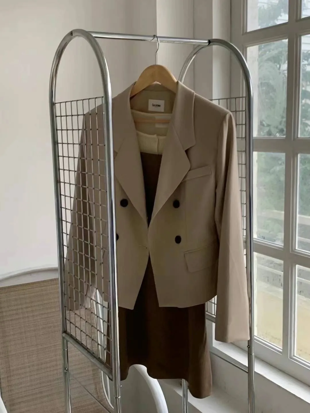 AA489特價縲縈雙排釦西裝領風衣外套 米 奶茶 深藍 原價$2790特價$1350