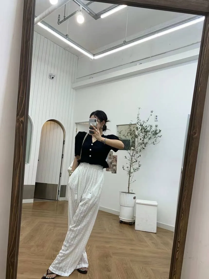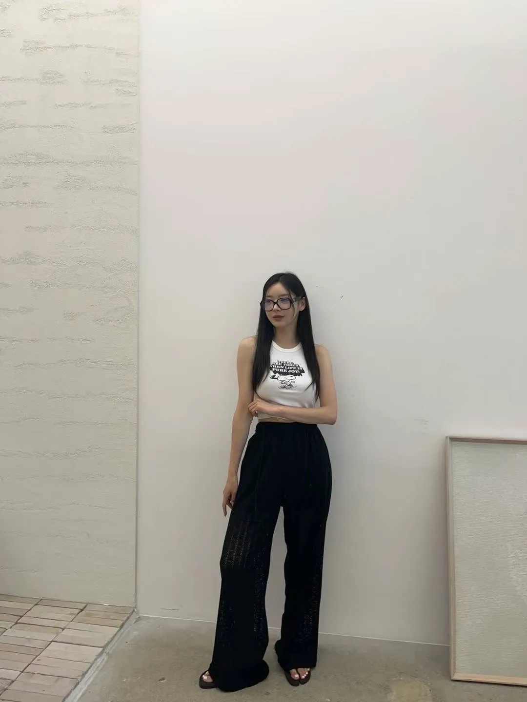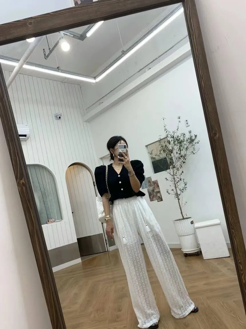 AA524新款簍空透光流蘇抽繩長褲 白 黑 官網價$1220 線上價$1190