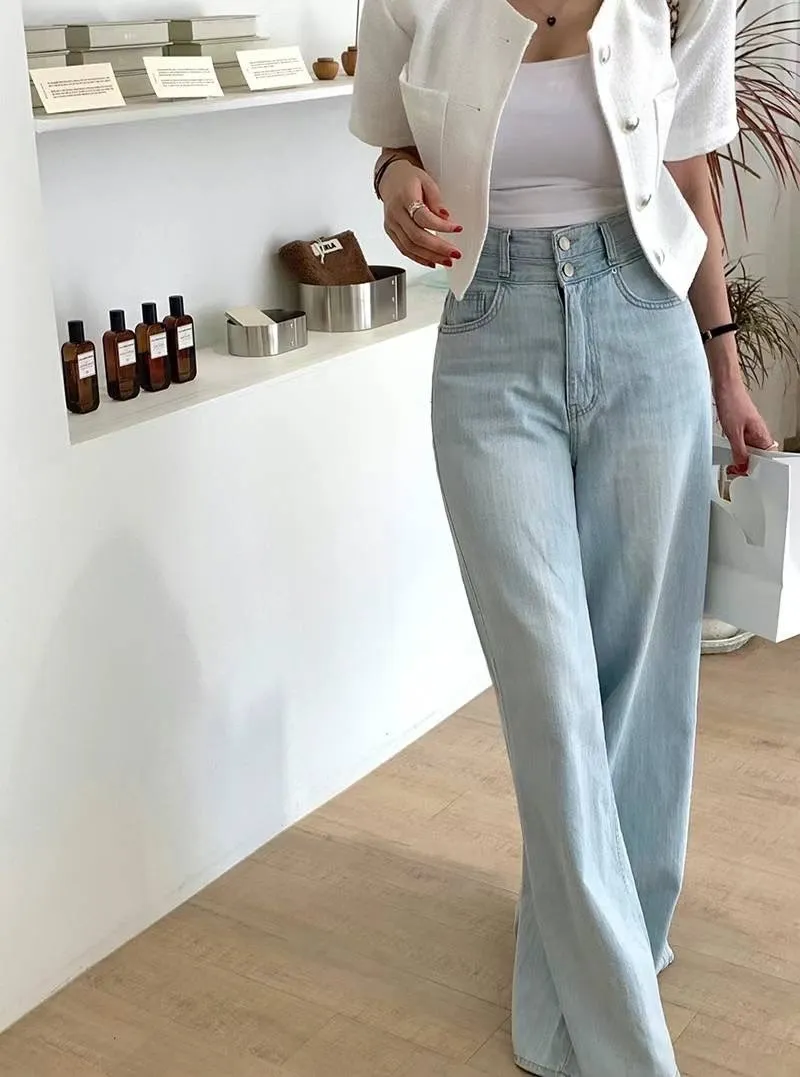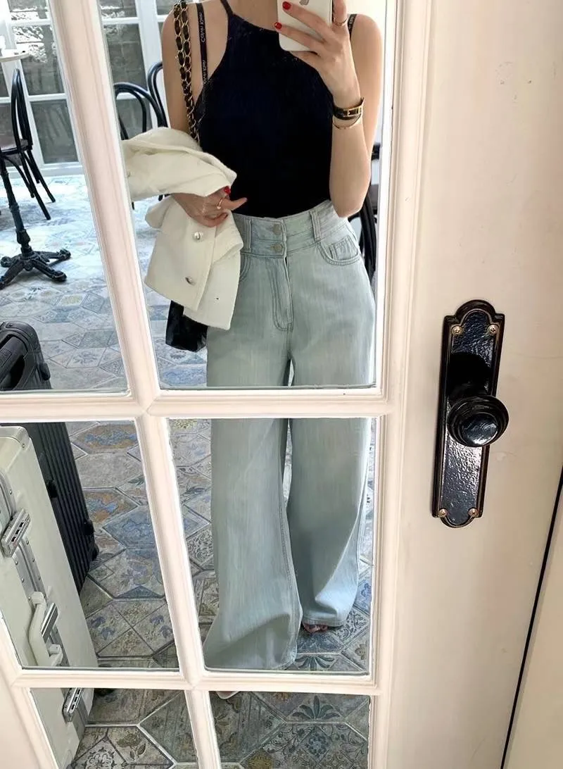 AA530回購款薄款雙釦高腰牛仔長褲(原HJ686) 淺藍 深藍 S M L 官網價$1190 線上價$1160