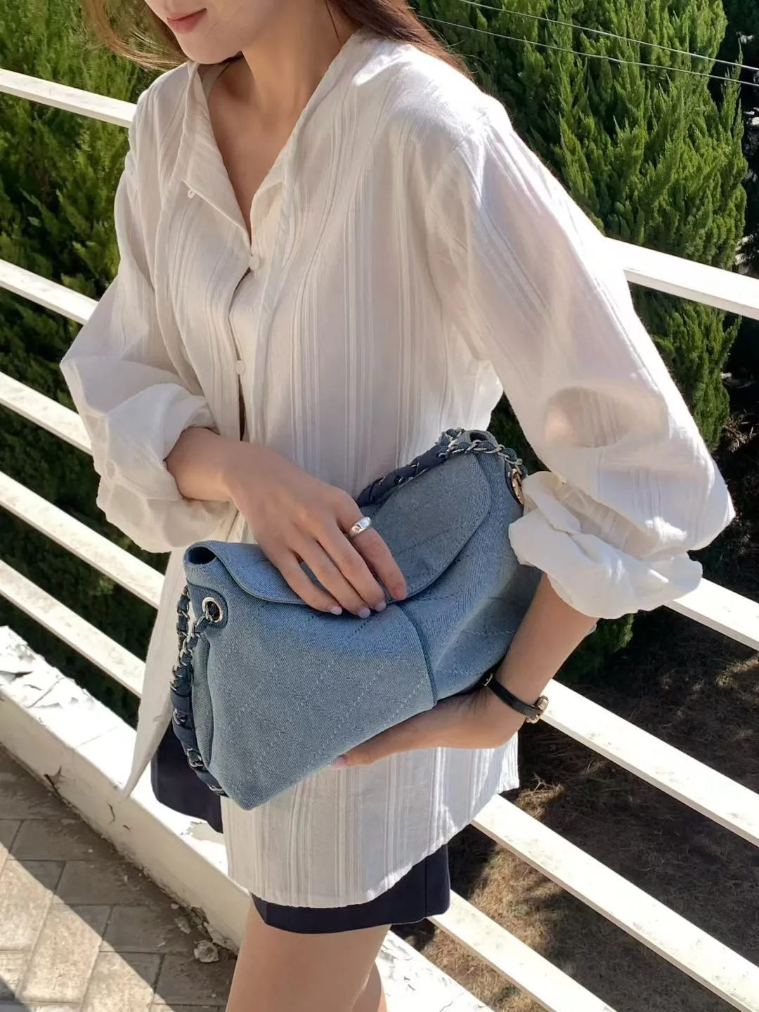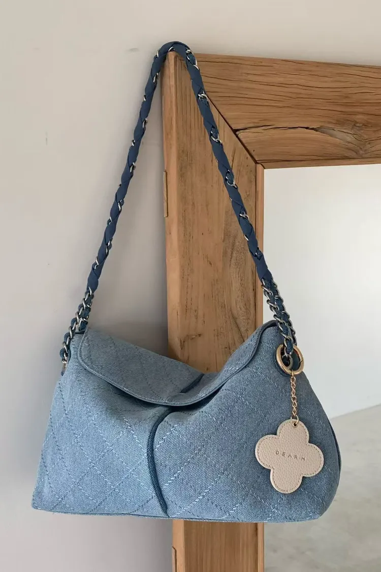 牛皮 金屬鍊條提袋 磁吸釦 容量很大 內有夾層