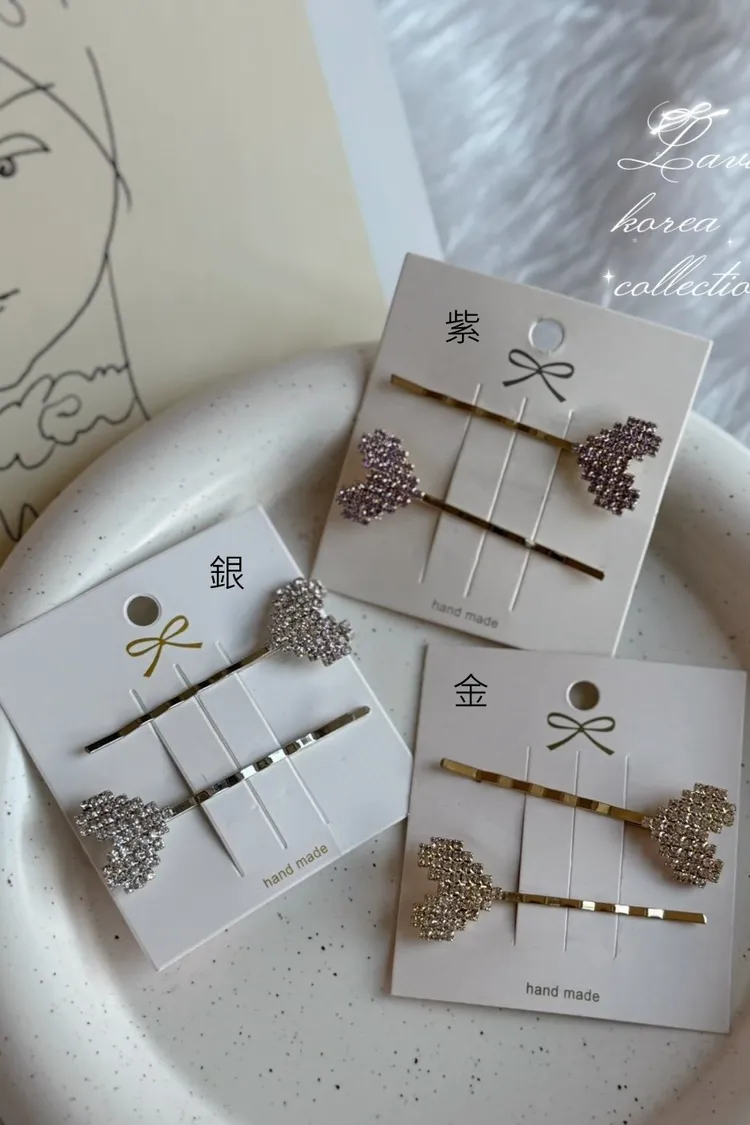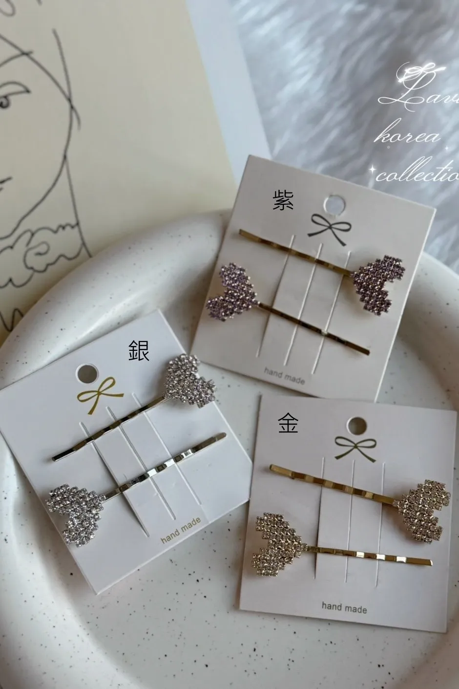 AF067施華洛世奇美鑽愛心髮夾組(一組兩入) 金 銀 紫 官網價$140 線上價$110