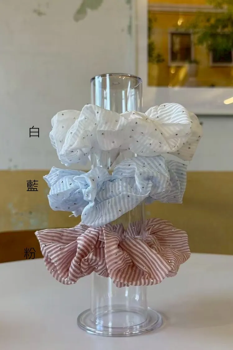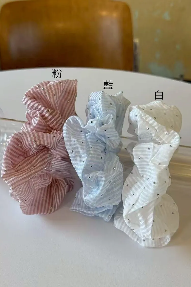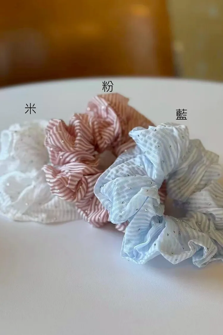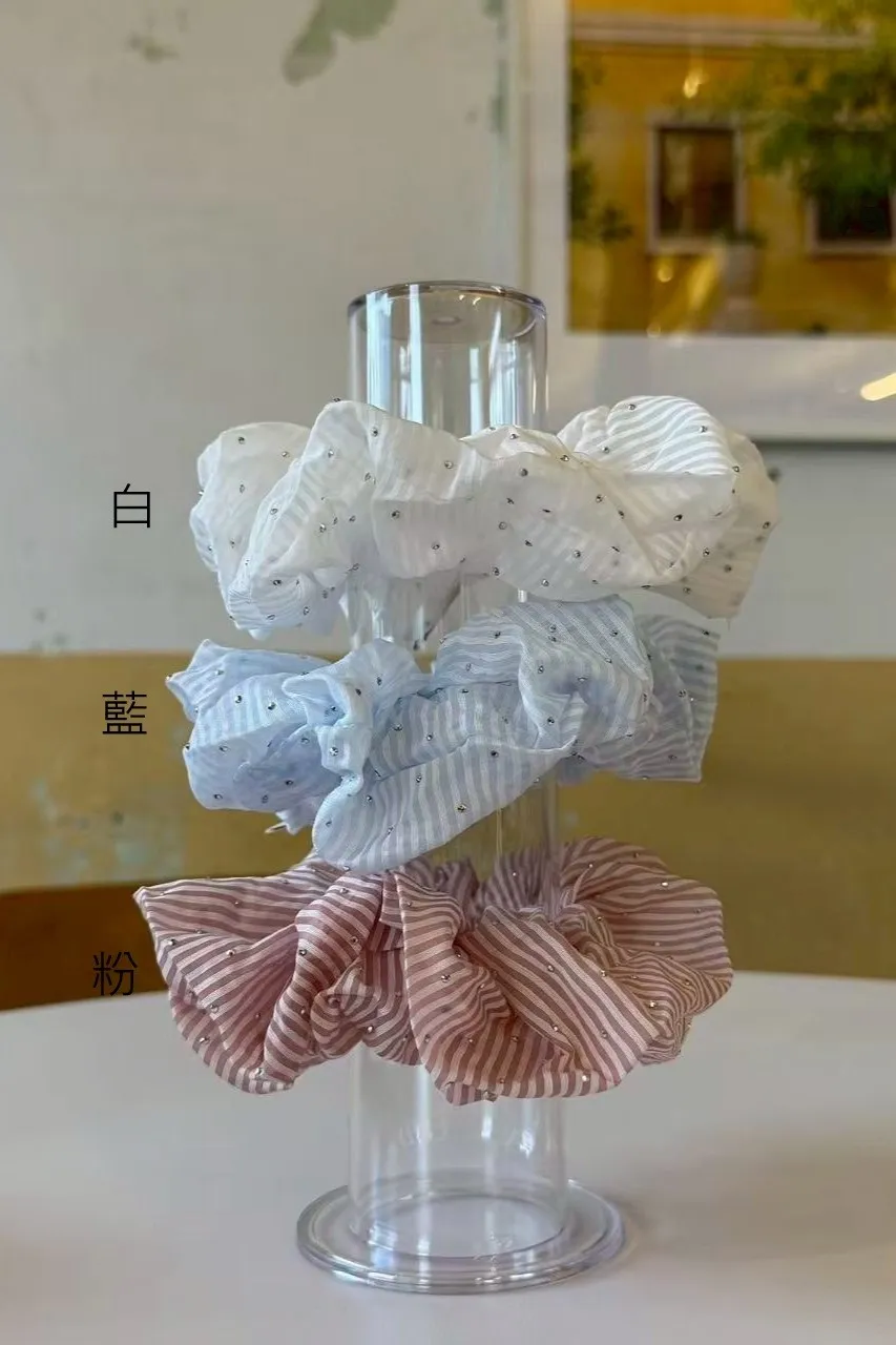 AF079悠揚清爽小鑽細條紋大腸圈 白 藍 粉 官網價$165 線上價$135