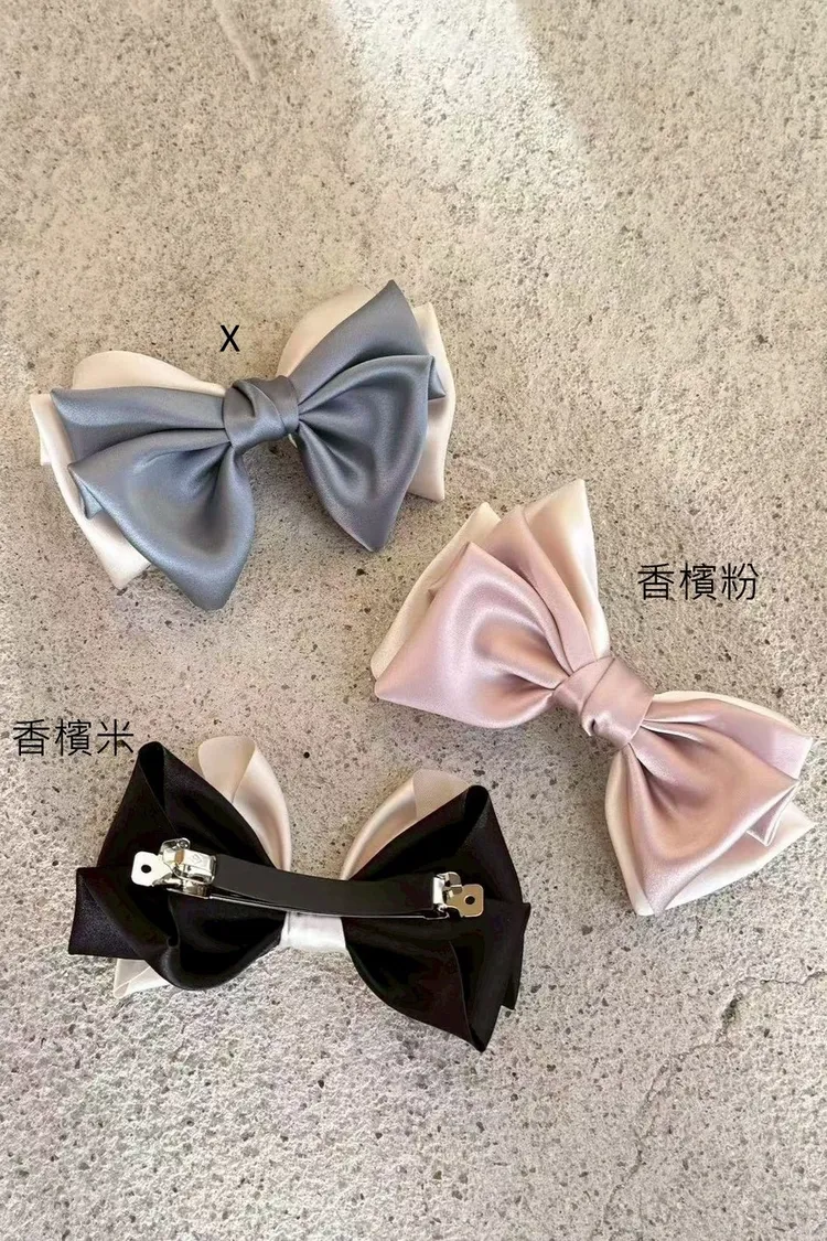 AF081推薦款優雅香檳光澤蝴蝶結髮夾 香檳粉 香檳米 官網價$190 線上價$160