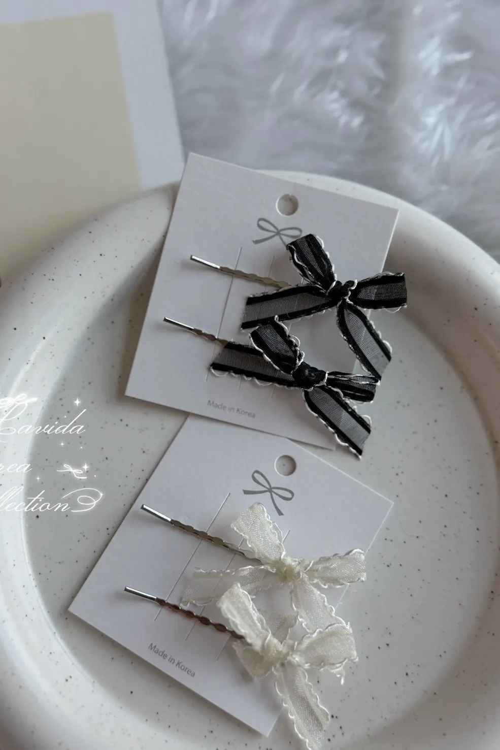 AF083蝴蝶結網紗一字髮夾組(一組兩入)