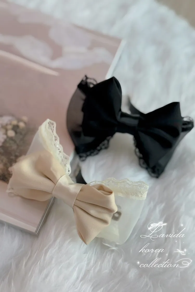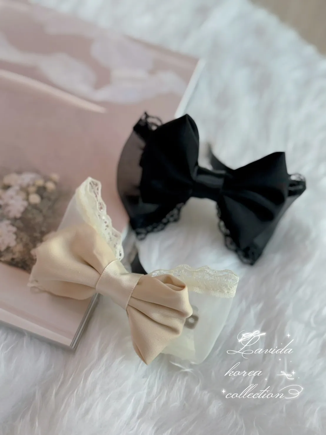 AF195雙層蝴蝶結緞帶一字夾 米 黑 官網價$180 線上價$150