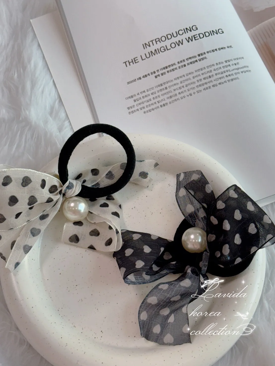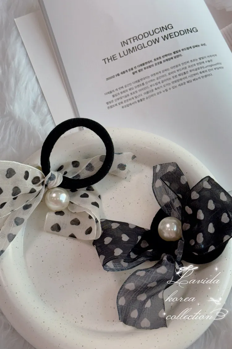 AF199悸動愛心珍珠雪紡髮圈 米 黑 官網價$150 線上價$120