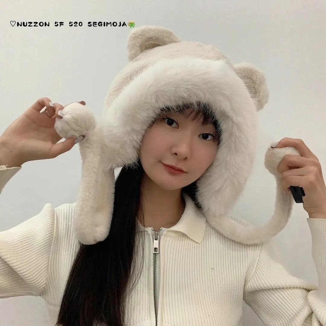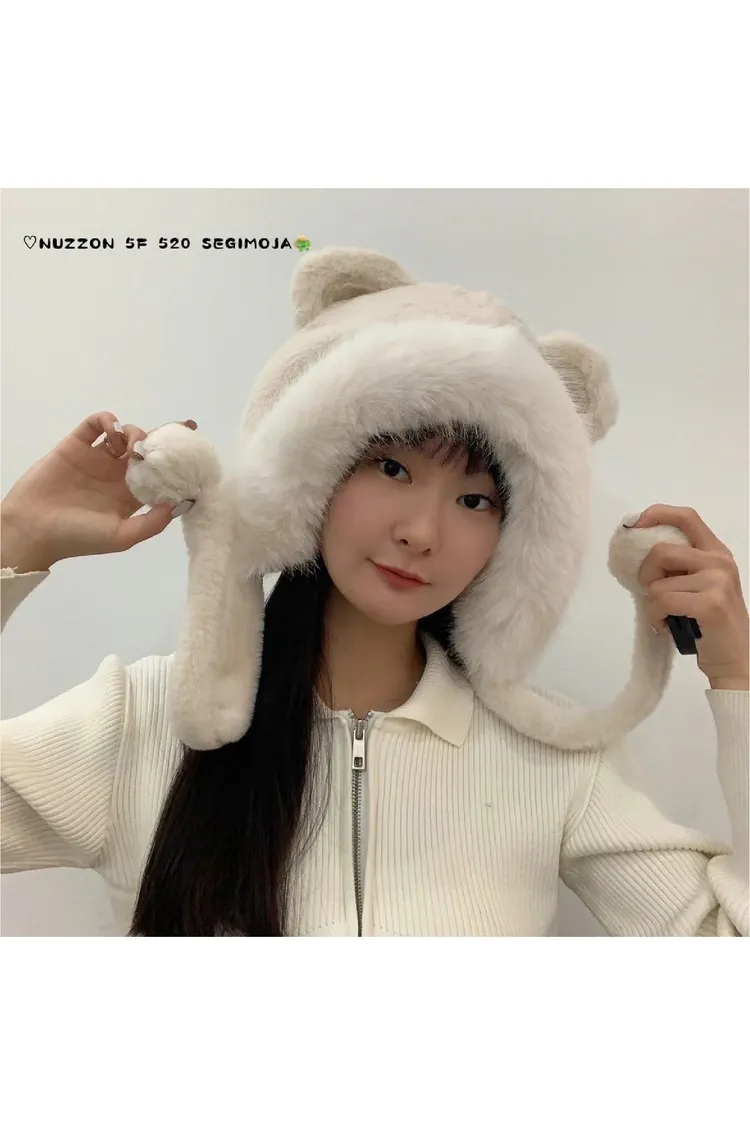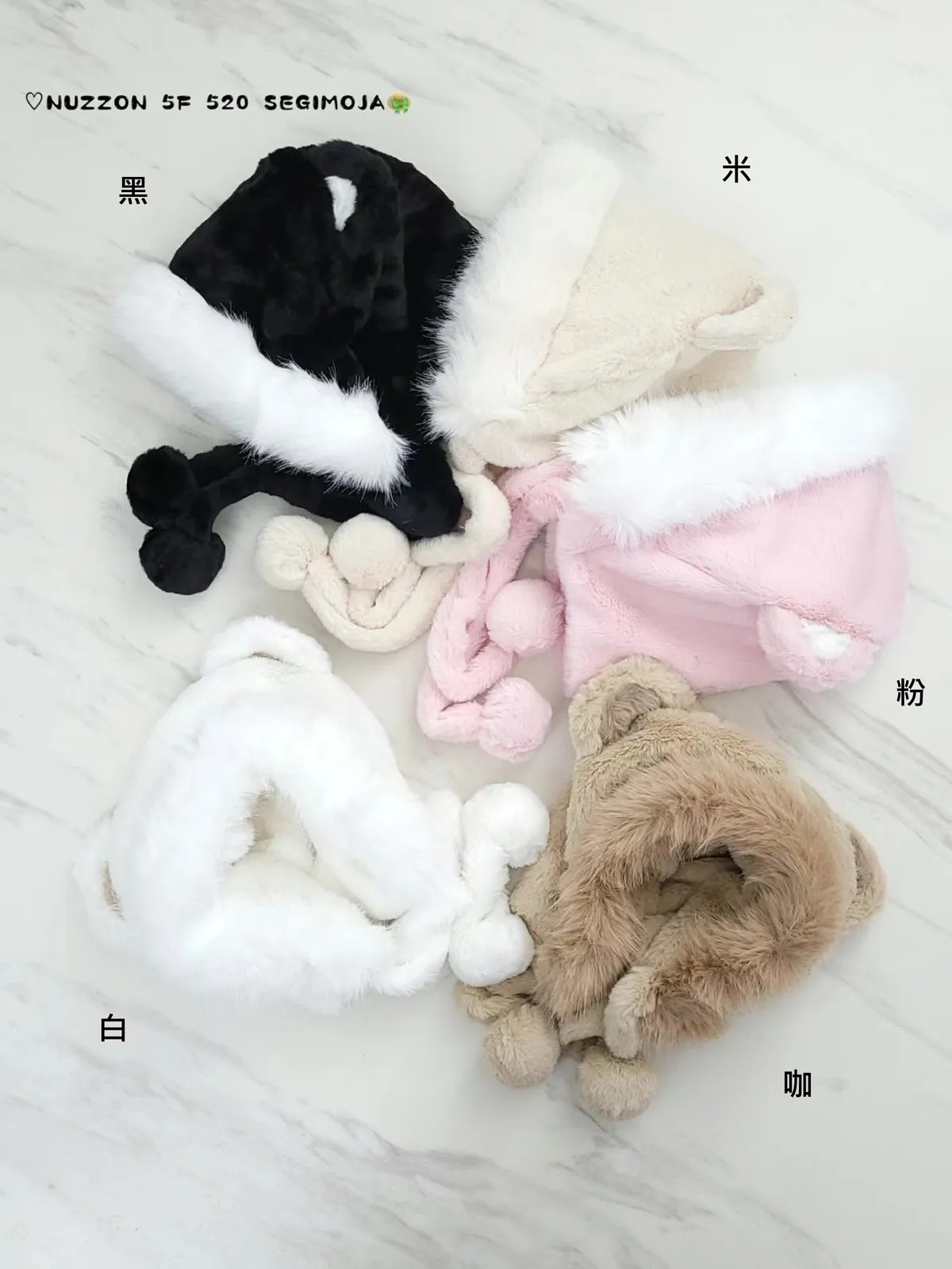 AJ055新款可愛耳朵熊熊帽 白 米 咖 黑 粉 官網價$460 線上價$430