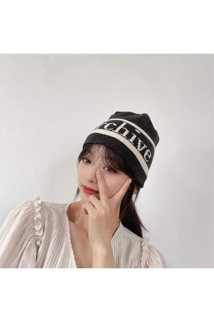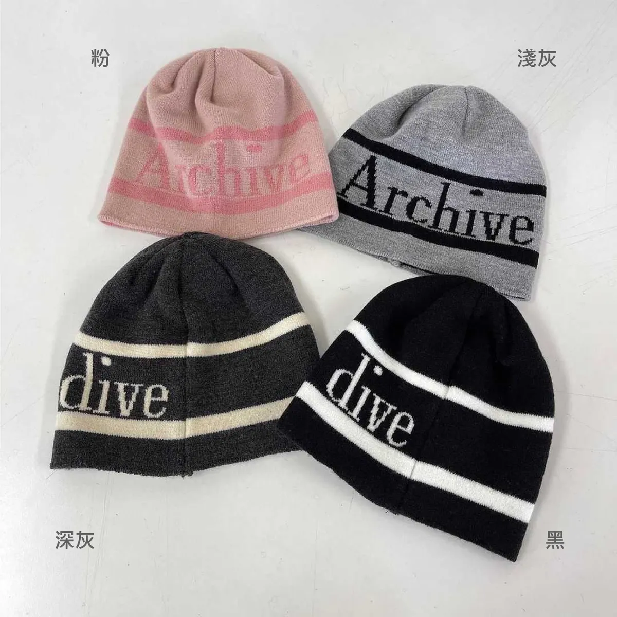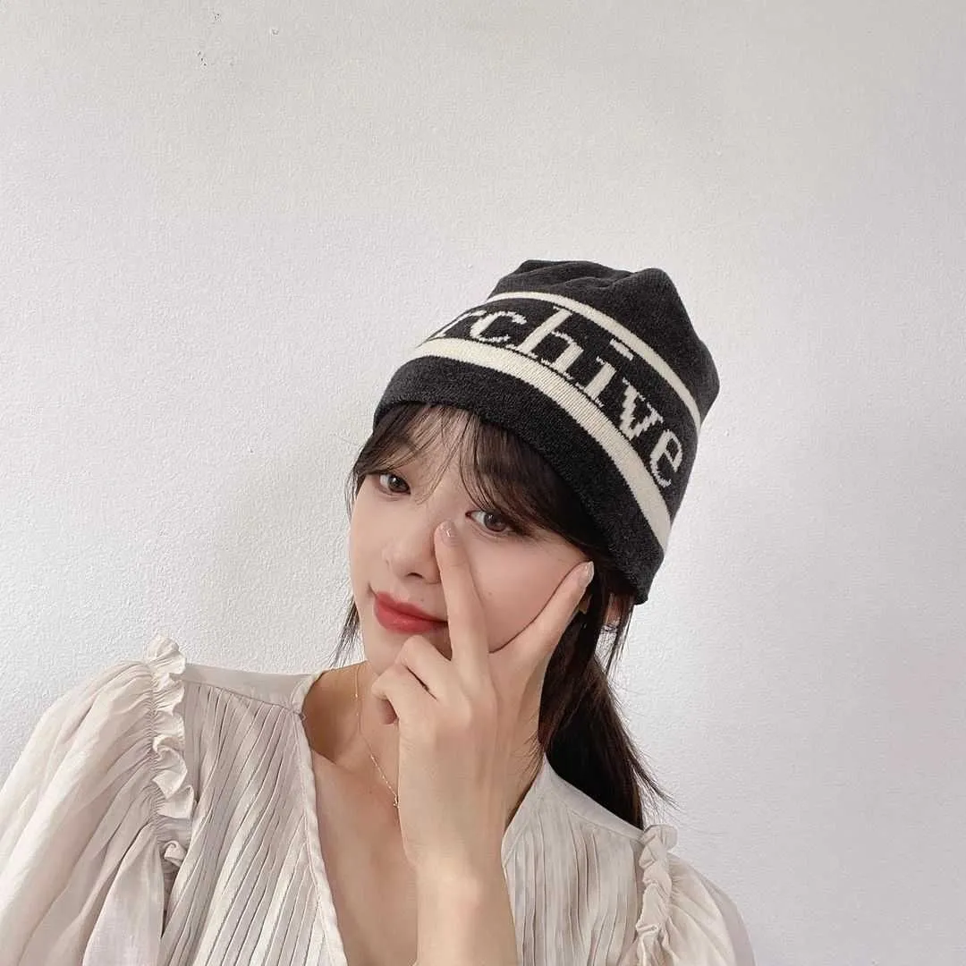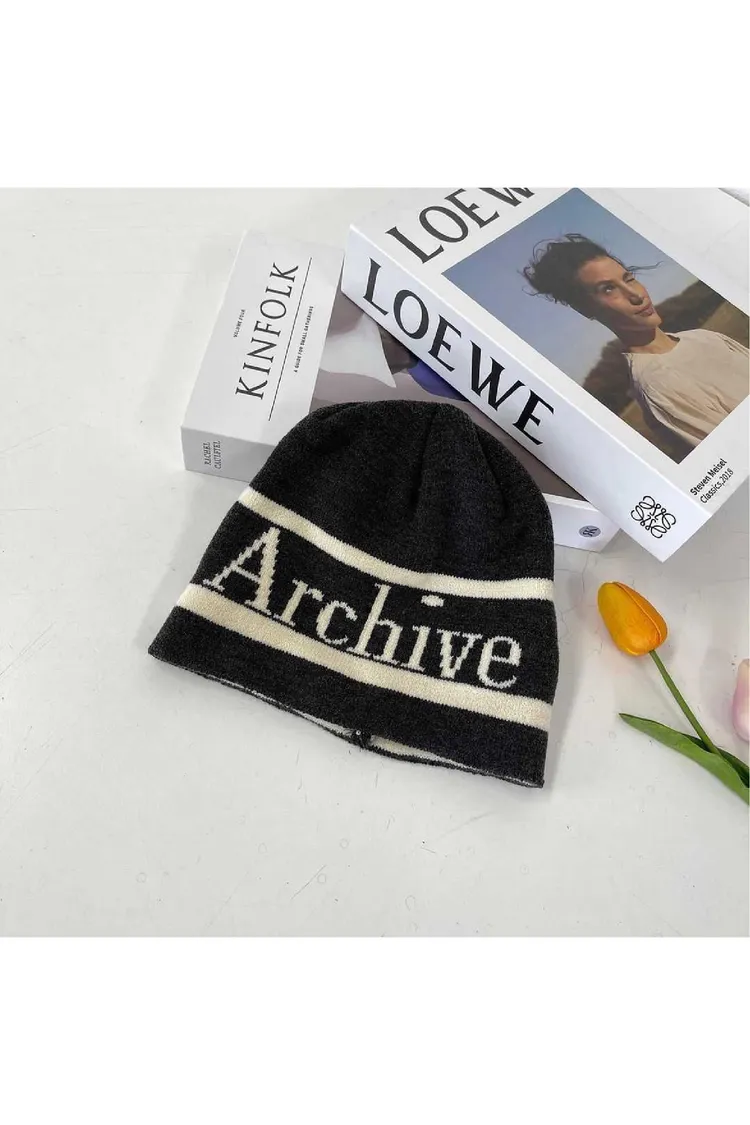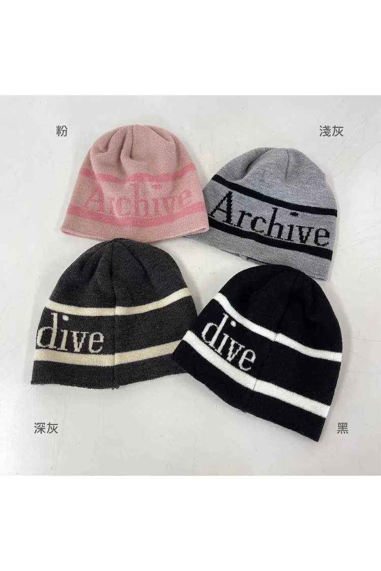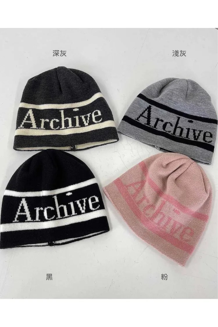 AJ061潮流英文Archive針織帽 黑 粉 淺灰 深灰 官網價$370 線上價$340