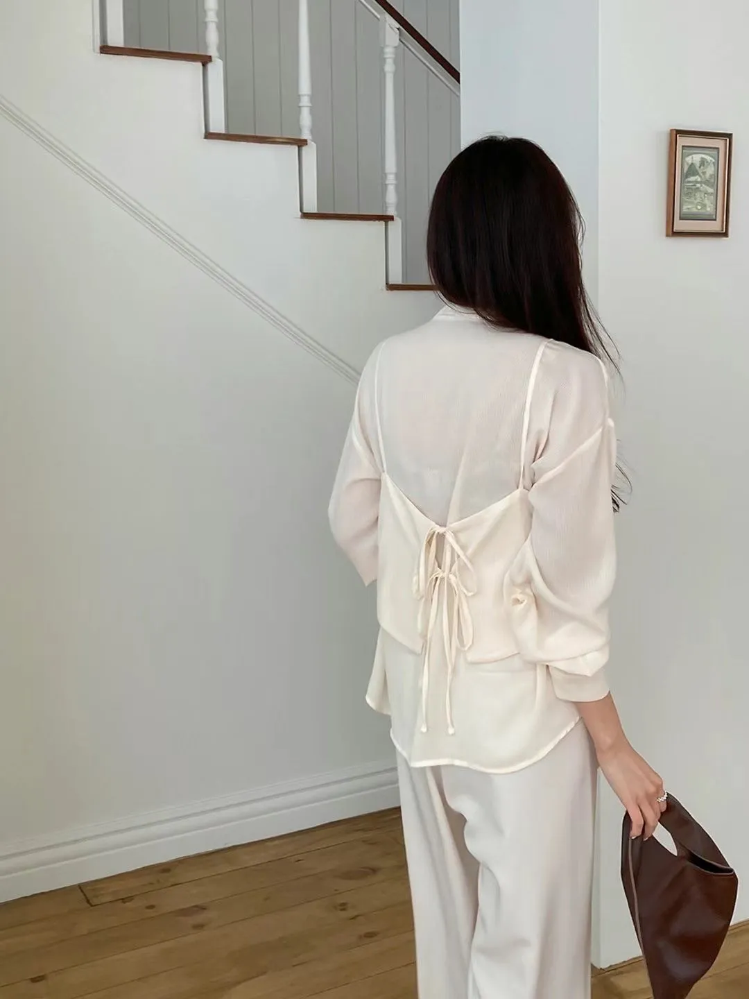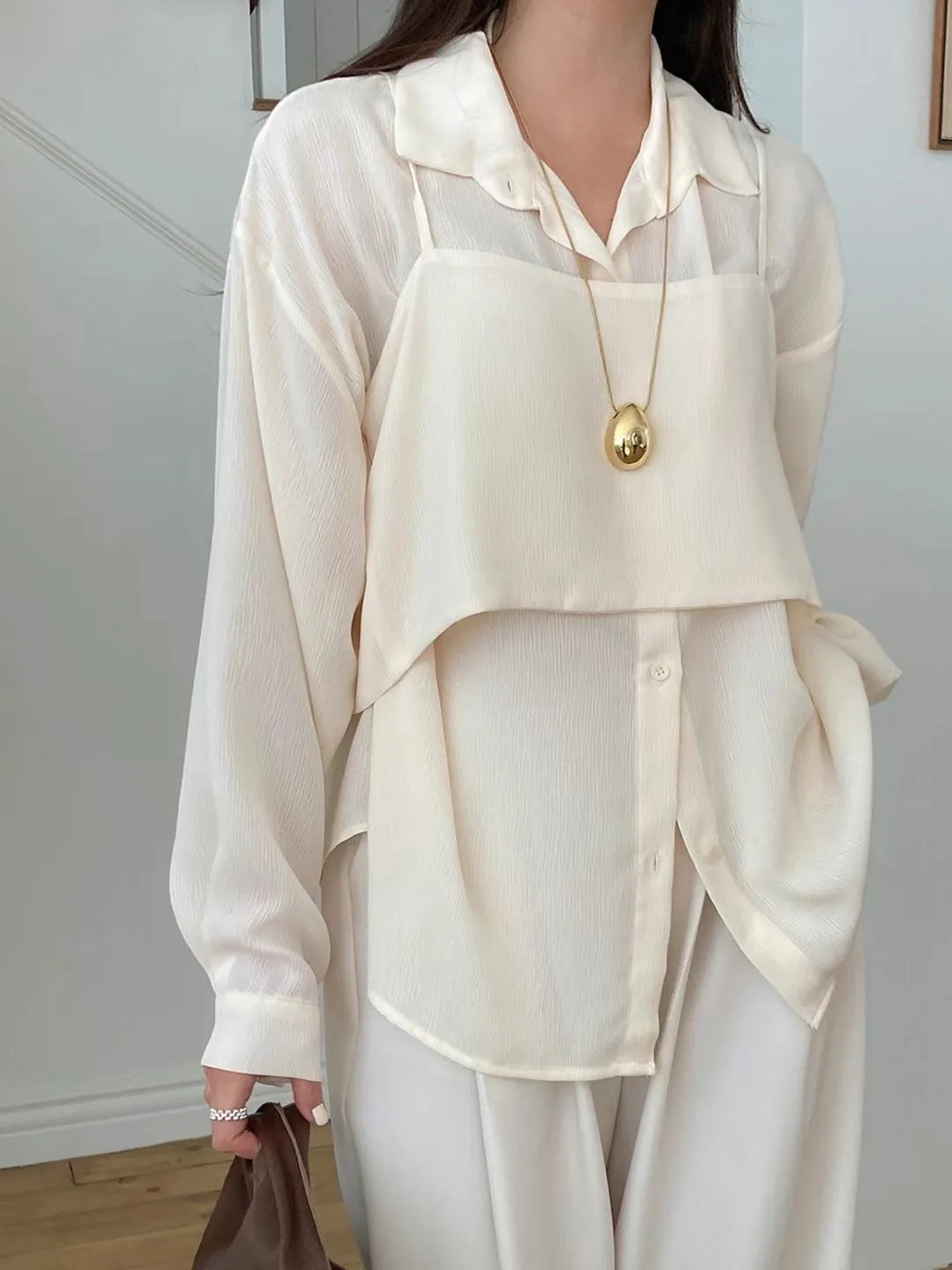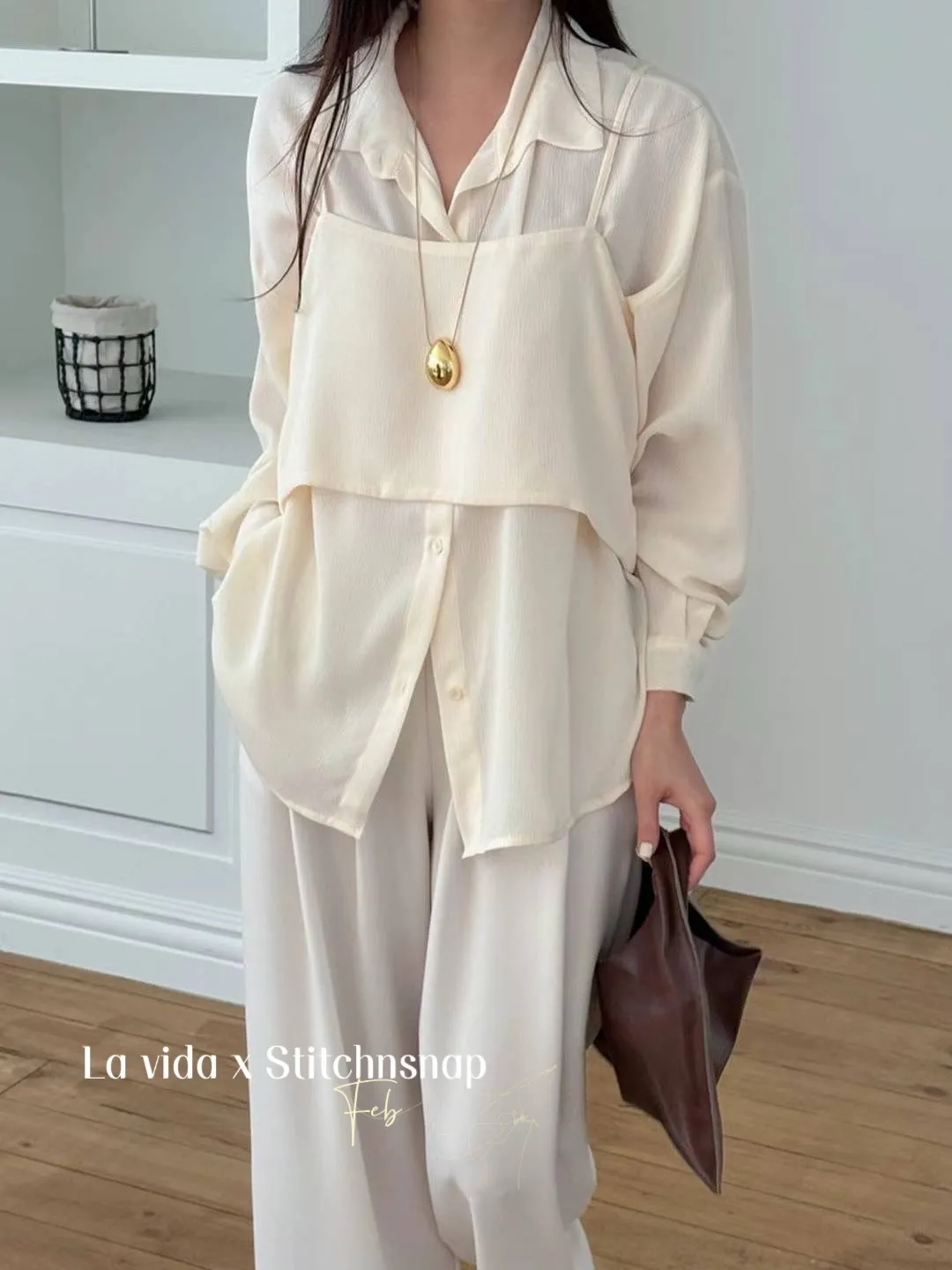 雪紡 背心襯衫兩件可拆 薄款輕盈 不易皺 適合台灣天氣 XL友善