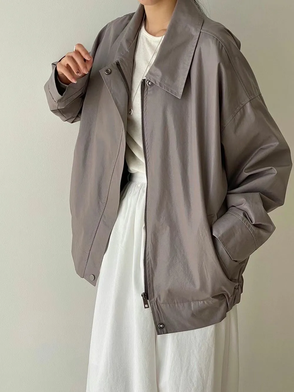 尼龍 滑面薄款 拉鍊穿脫 有口袋 可當夏天防風外套 適合台灣四季