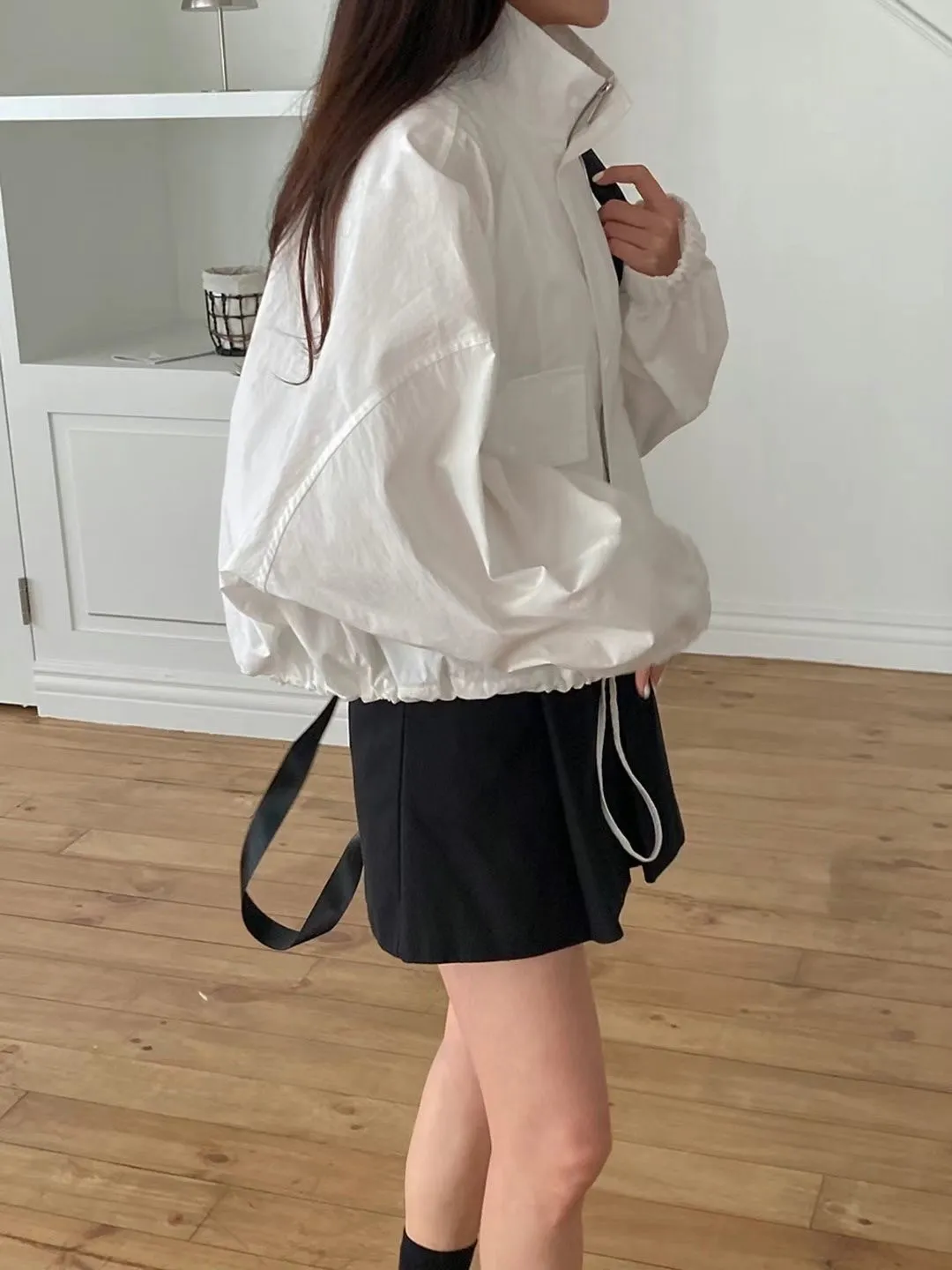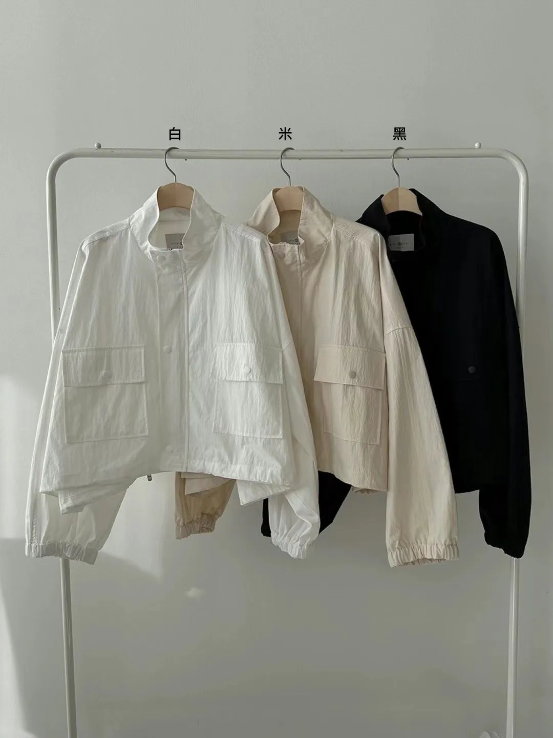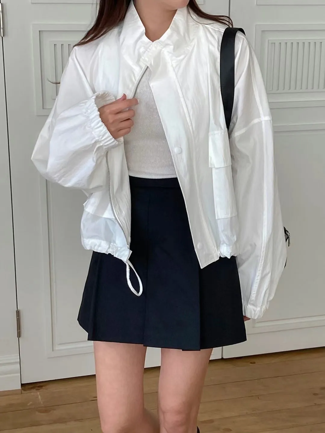 尼龍 拉鍊穿脫 側腰抽繩 袖口鬆緊 輕盈好收納 夏天可穿 無內裡