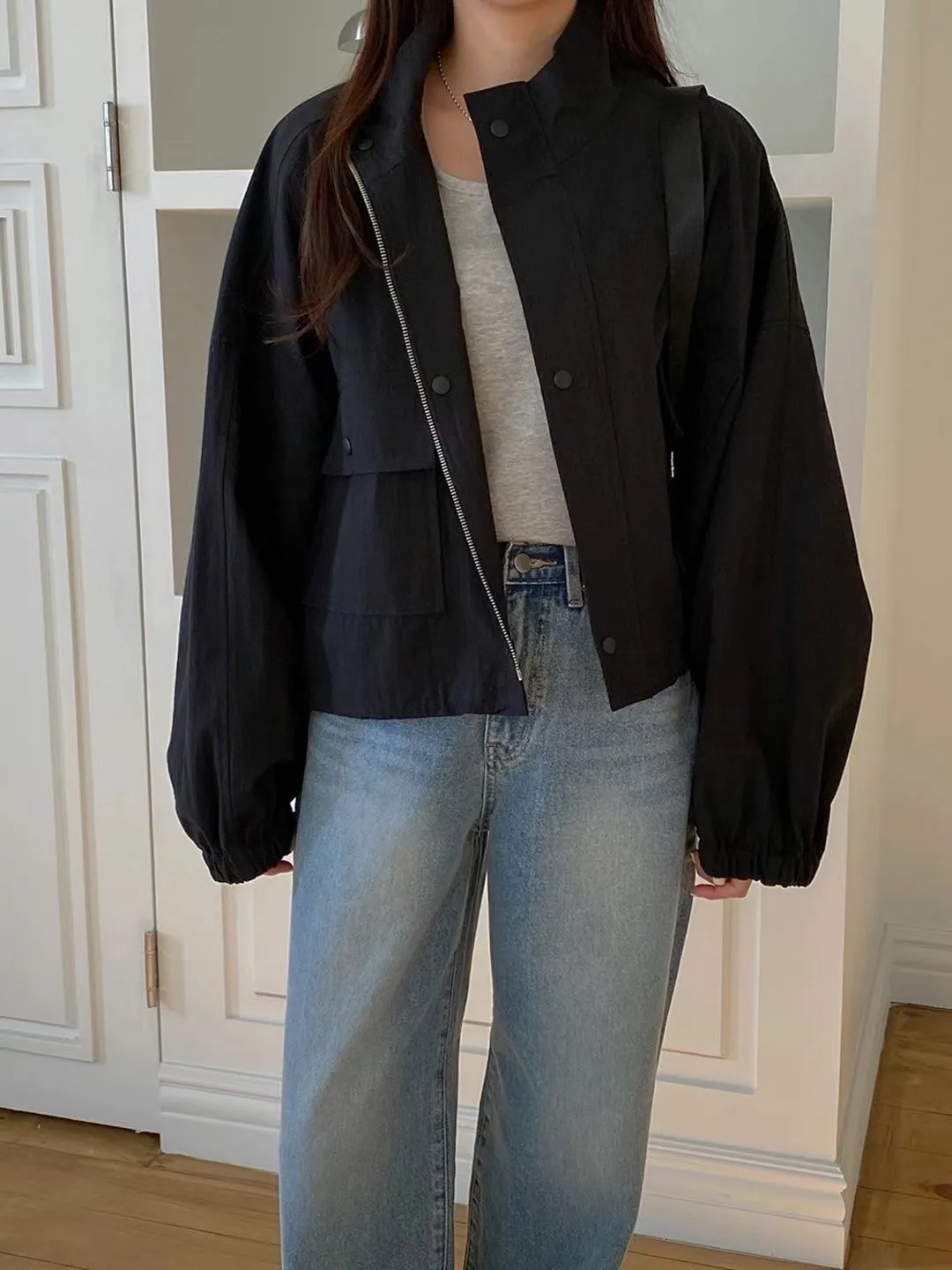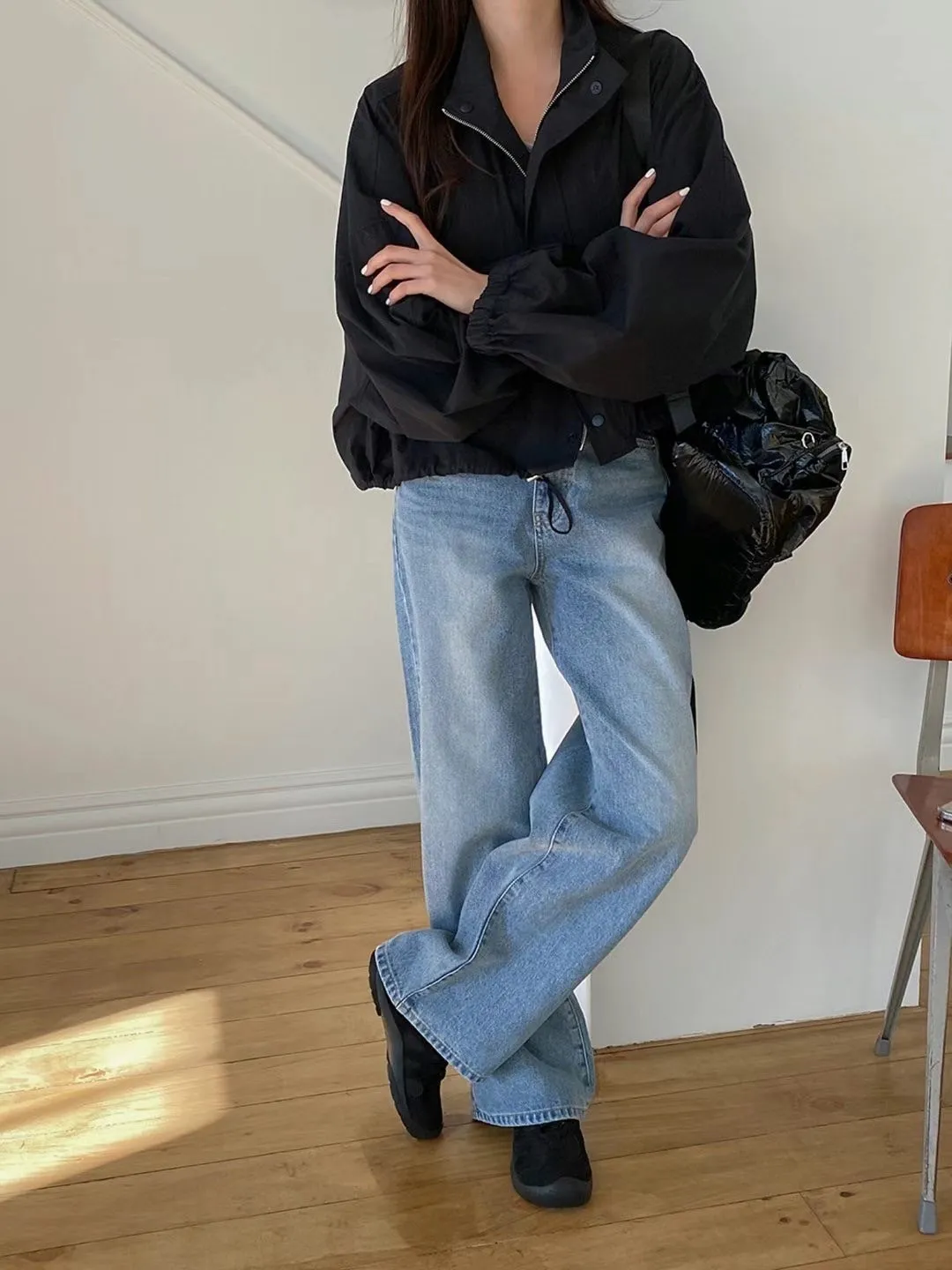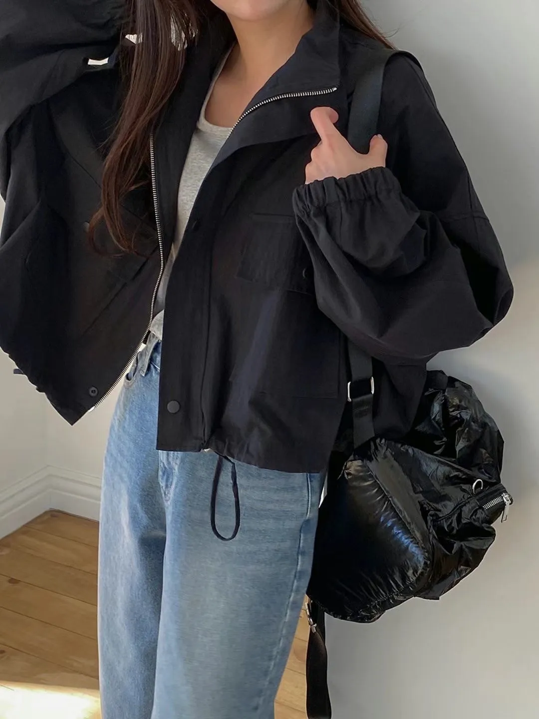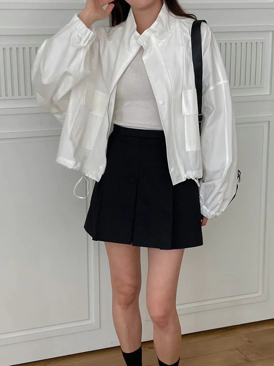 尼龍 拉鍊穿脫 側腰抽繩 袖口鬆緊 輕盈好收納 夏天可穿 無內裡