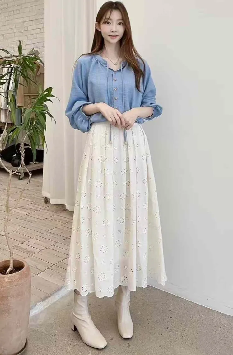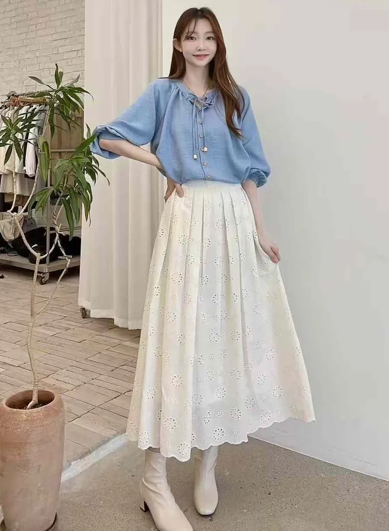 棉+燒花蕾絲 氣質典雅 後腰鬆緊 有內裡 無口袋
